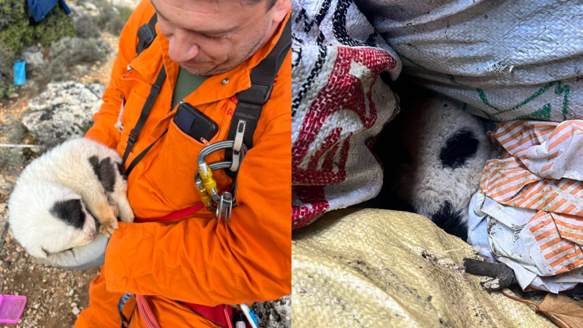 Μέσα στα σκουπίδια και στα νεκρά ζώα, οι σπηλαιολόγοι εντόπισαν ένα κουτάβι που κατάφερε να επιβιώσει. Το έβγαλαν από το σπήλαιο και αναζητούν οικογένεια για την υιοθεσία του.