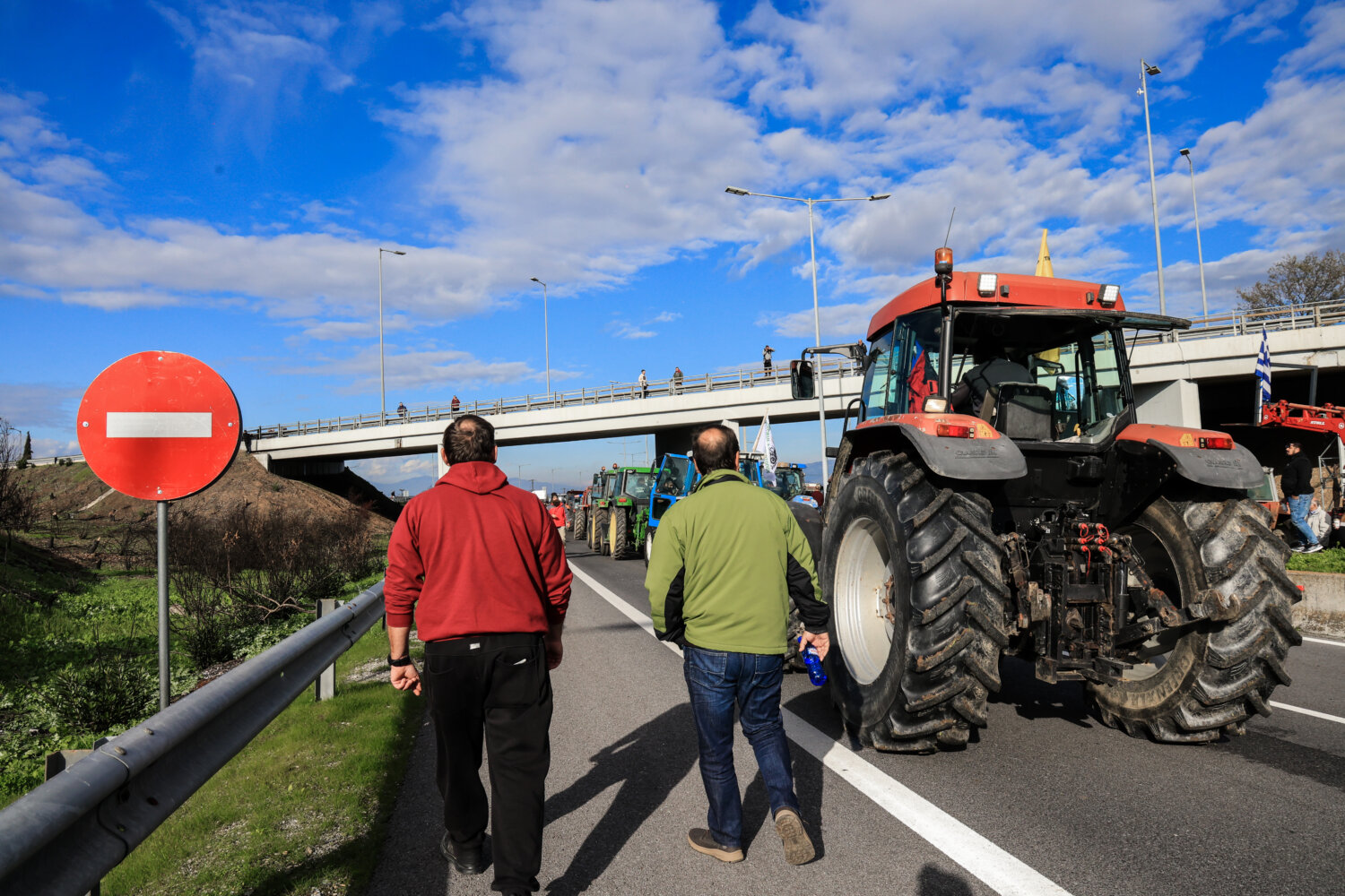 Μπλόκο αγροτών και κτηνοτρόφων από τη Λάρισα, την Ελασσόνα, τον Τύρναβο, την Αγιά και τα Φάρσαλα και την Μαγνησία με τρακτέρ και αγροτικά μηχανήματα στον κόμβο της Εθνικής Οδού στη Νίκαια Λάρισας (EUROKINISSI)