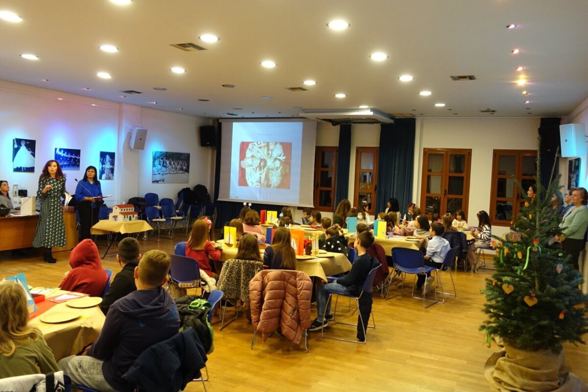 Τα παιδιά θα πληροφορηθούν το συμβολισμό των εθίμων, παρακολουθώντας πλούσιο σχετικό οπτικοακουστικό υλικό, αλλά θα δημιουργήσουν και τις δικές τους κατασκευές εμπνευσμένες πάντα από την τελετουργία των εορταστικών ημερών. Ευχετήριες κάρτες, χριστόψωμο, παραδοσιακά στολίδια, ημερολόγια κ.α. Και βέβαια τα παιδιά θα τραγουδήσουν κάλαντα από διάφορες περιοχές της χώρας μας. Είναι ένα όμορφο ταξίδι στην παράδοση με σεβασμό στα έθιμα των ημερών.
