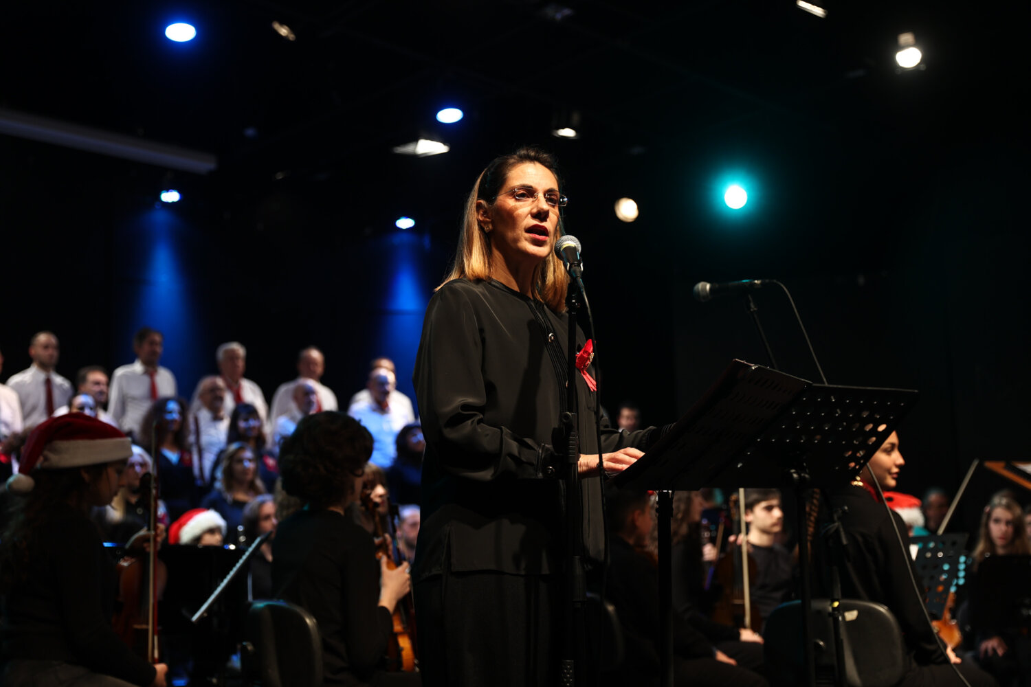 Η αίθουσα του ΔΩΛ πλημμύρισε με μελωδίες, φως και χριστουγεννιάτικη θαλπωρή, στη μεγάλη συναυλία με τίτλο «Γιορτινά τραγούδια», μια λαμπερή συνάντηση χορωδίας και ορχήστρας.