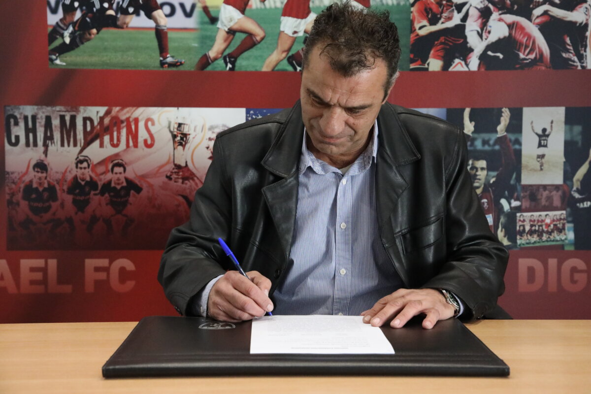 Η ΠΑΕ ΑΕΛ τον καλωσορίζει εκ νέου στην «βυσσινί» οικογένεια και του εύχεται καλή επιτυχία στο έργο του».