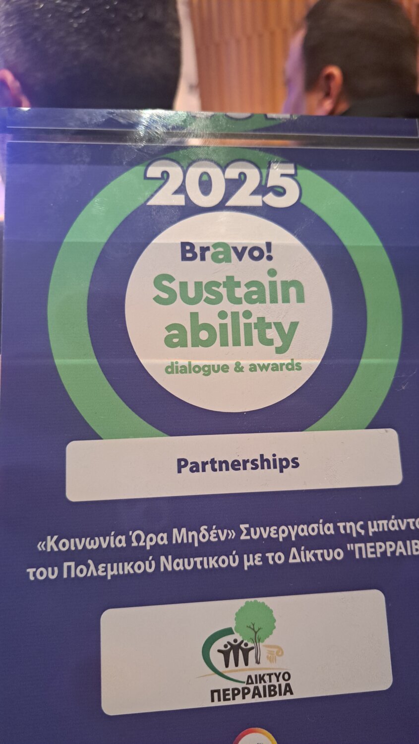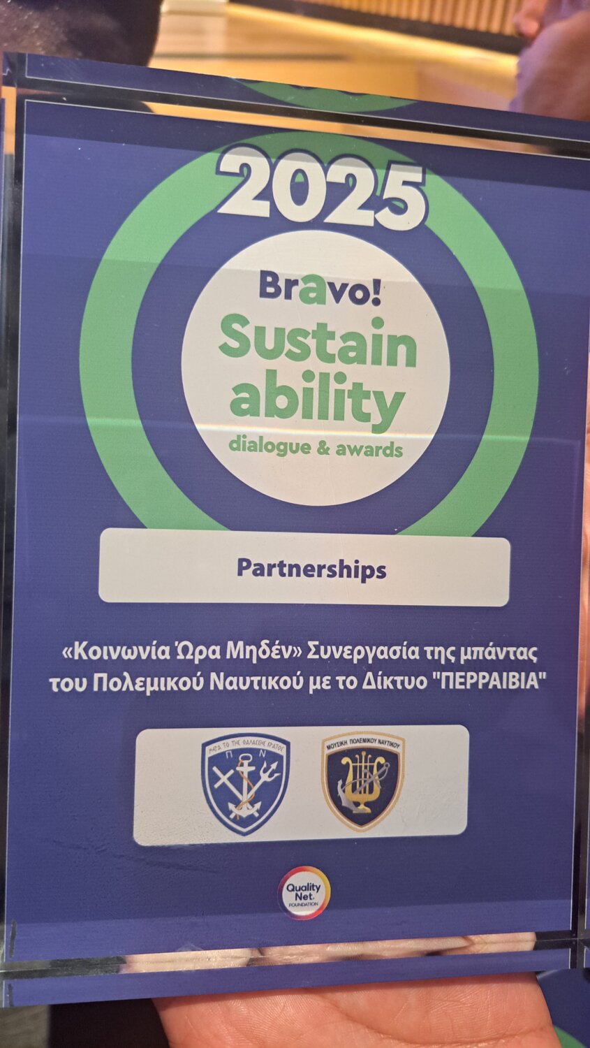 Μια ιδιαίτερα σημαντική βράβευση δόθηκε στο Δίκτυο «ΠΕΡΡΑΙΒΙΑ» και στη Μπάντα του Πολεμικού Ναυτικού, αφού κατέκτησαν, μέσω ανοιχτής ψηφοφορίας, το βραβείο BRAVO Sustainability Dialogue & Awards 2025, γιατί από το έτος 2012 και μέχρι σήμερα πραγματοποίησαν μαζί 30 συναυλίες με σκοπό τη στήριξη ευπαθών ομάδων σε όλη τη Θεσσαλία και συμμετείχαν ενεργά στα Bravo Sustainability Dialogue & Awards 2025, τον Θεσμό Κοινωνικού Διαλόγου για τη Βιώσιμη Ανάπτυξη, που αναπτύσσεται στη χώρα μας με στόχο την ανάδειξη των Πρωτοβουλιών που συμβάλλουν σε ένα βιώσιμο μέλλον.