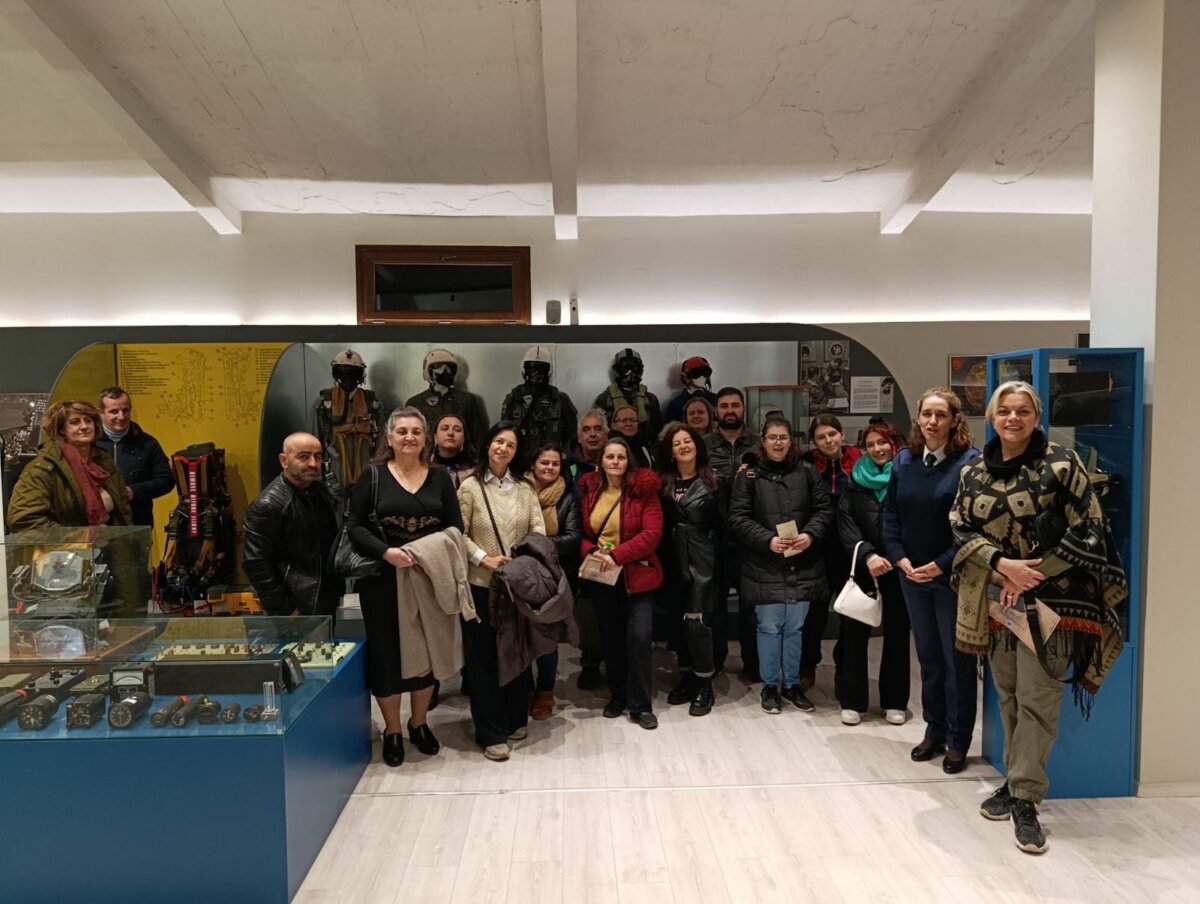 Οι συνοδεύοντες Εκπαιδευτικοί και οι Μαθητές είχαν τη δυνατότητα να ξεναγηθούν στο εξαιρετικά προσεγμένο χώρο όπου εκτίθεται μεγάλος αριθμός ιστορικών και συλλεκτικών αντικειμένων της Πολεμικής Αεροπορίας, μεταξύ των οποίων ένα αεροσκάφος F-104, εξομοιωτές πτήσεων αεροσκαφών Α-7E και F-1, οπλικά συστήματα, βλήματα αεροσκαφών, παλαιότερες και νέες στολές πιλότων, ιστορικά έγγραφα και πλούσιο φωτογραφικό υλικό από τη μακρά και ένδοξη ιστορία της Πολεμικής Αεροπορίας της Ελλάδος από της συστάσεώς της, στις αρχές του 20ου αιώνα, μέχρι και σήμερα. Ακολούθως, περιηγήθηκαν σε ιδιαίτερο χώρο που είναι αφιερωμένος στους ηρωικώς πεσόντες κατά την επιτέλεση του καθήκοντος Έλληνες Αεροπόρους διαχρονικά.