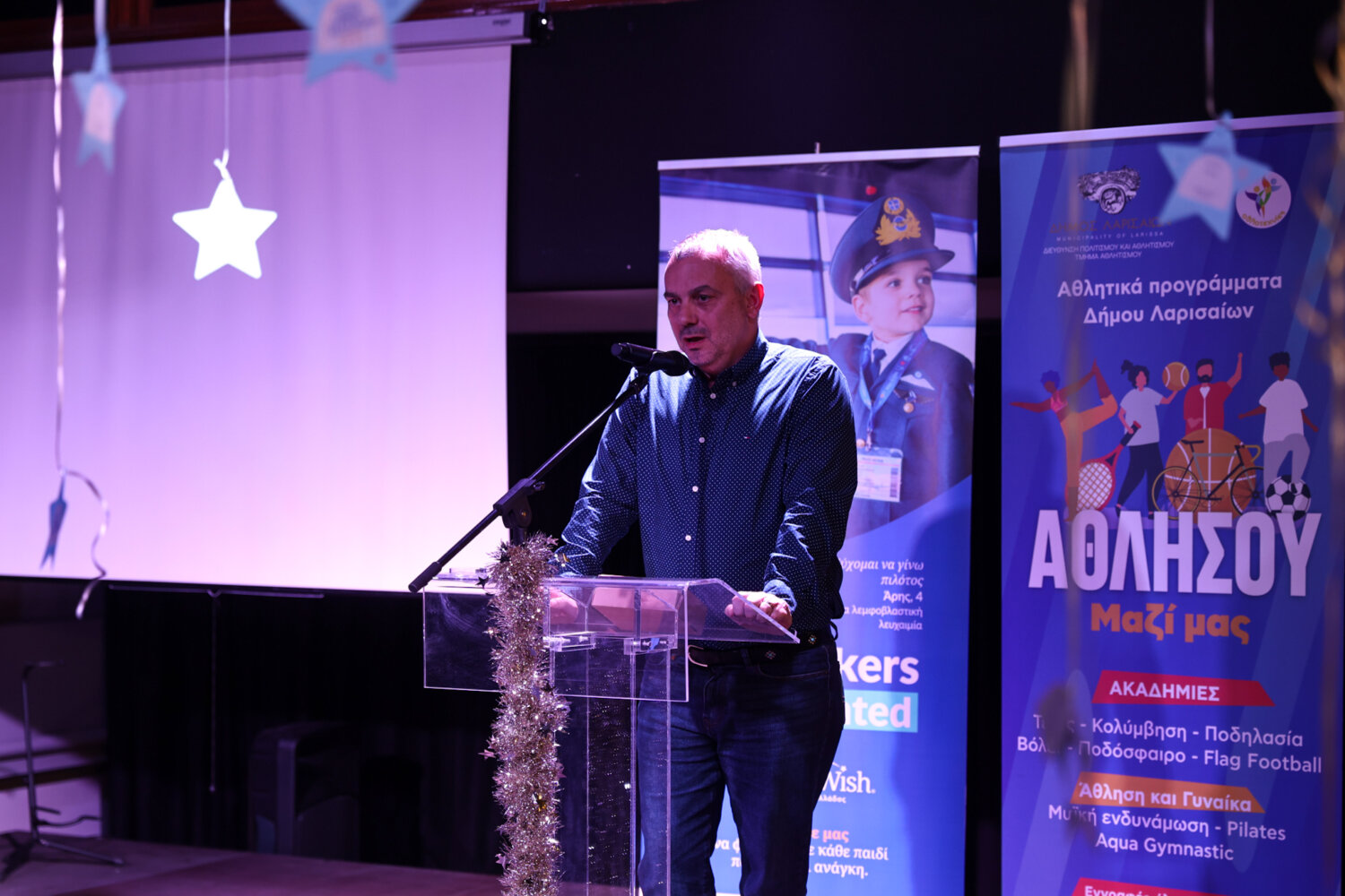 Πόπη Ρεβήσιου (εθελόντρια): «Βρισκόμαστε εδώ σήμερα να τιμήσουμε τους ανθρώπους από το Τμήμα Άθλησης του Δήμου Λαρισαίων που κατάφεραν με τη δράση τους να εκπληρώσουν μία ευχή. Τους ευχαριστούμε και τους συγχαίρουμε και συνεχίζουμε για δεύτερη συνεχή χρονιά αυτή τη δράση».