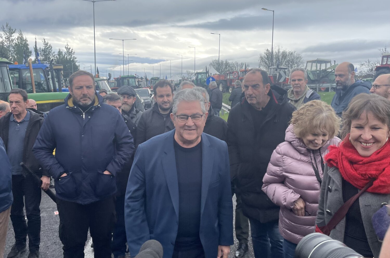 Ο κ. Κουτσούμπας έφτασε στο σημείο που έχει δημιουργηθεί το ισχυρό μπλόκο της Θεσσαλίας στη μία το μεσημέρι όπου και τον υποδέχθηκαν αγρότες και κτηνοτρόφοι.
