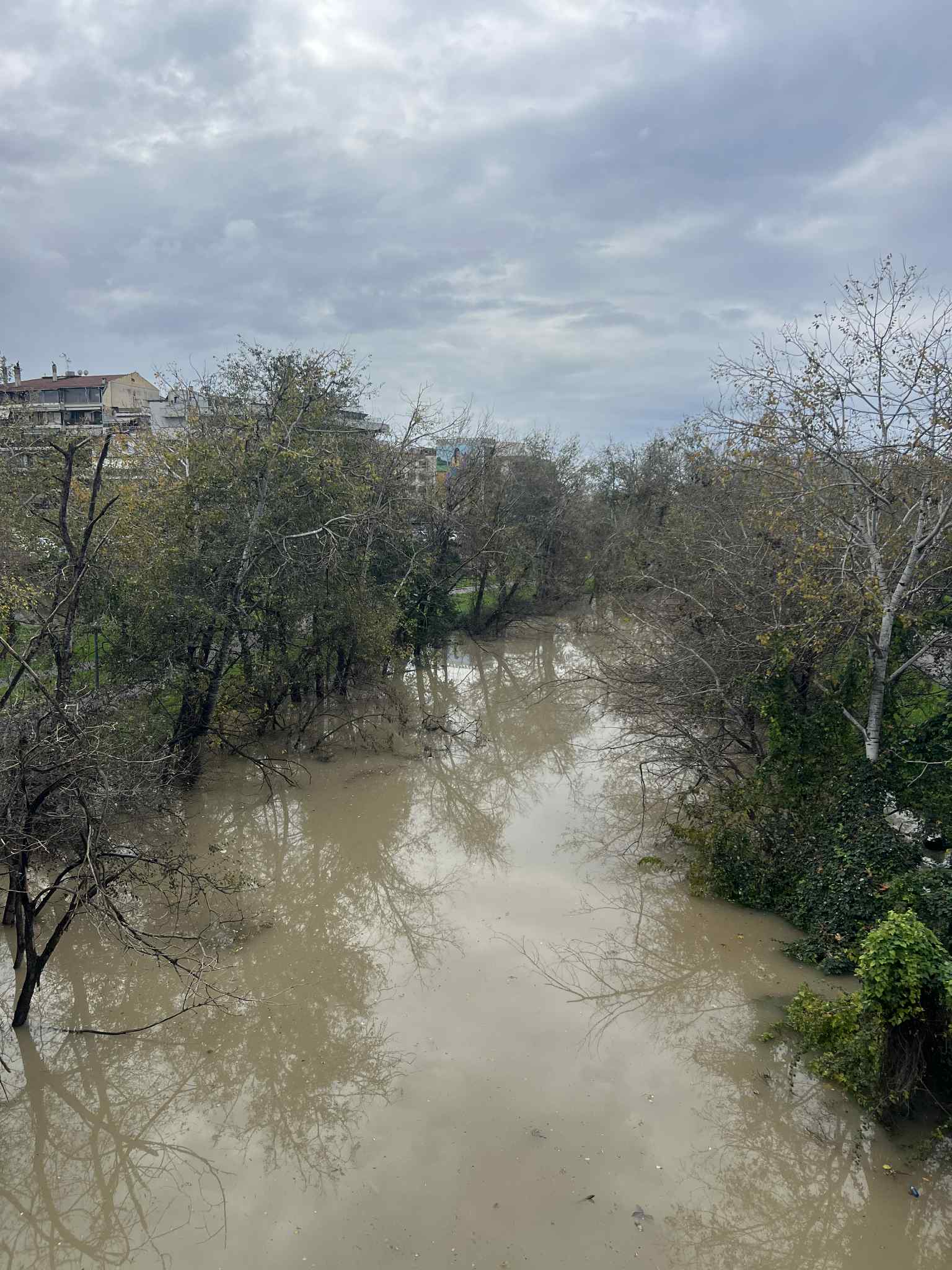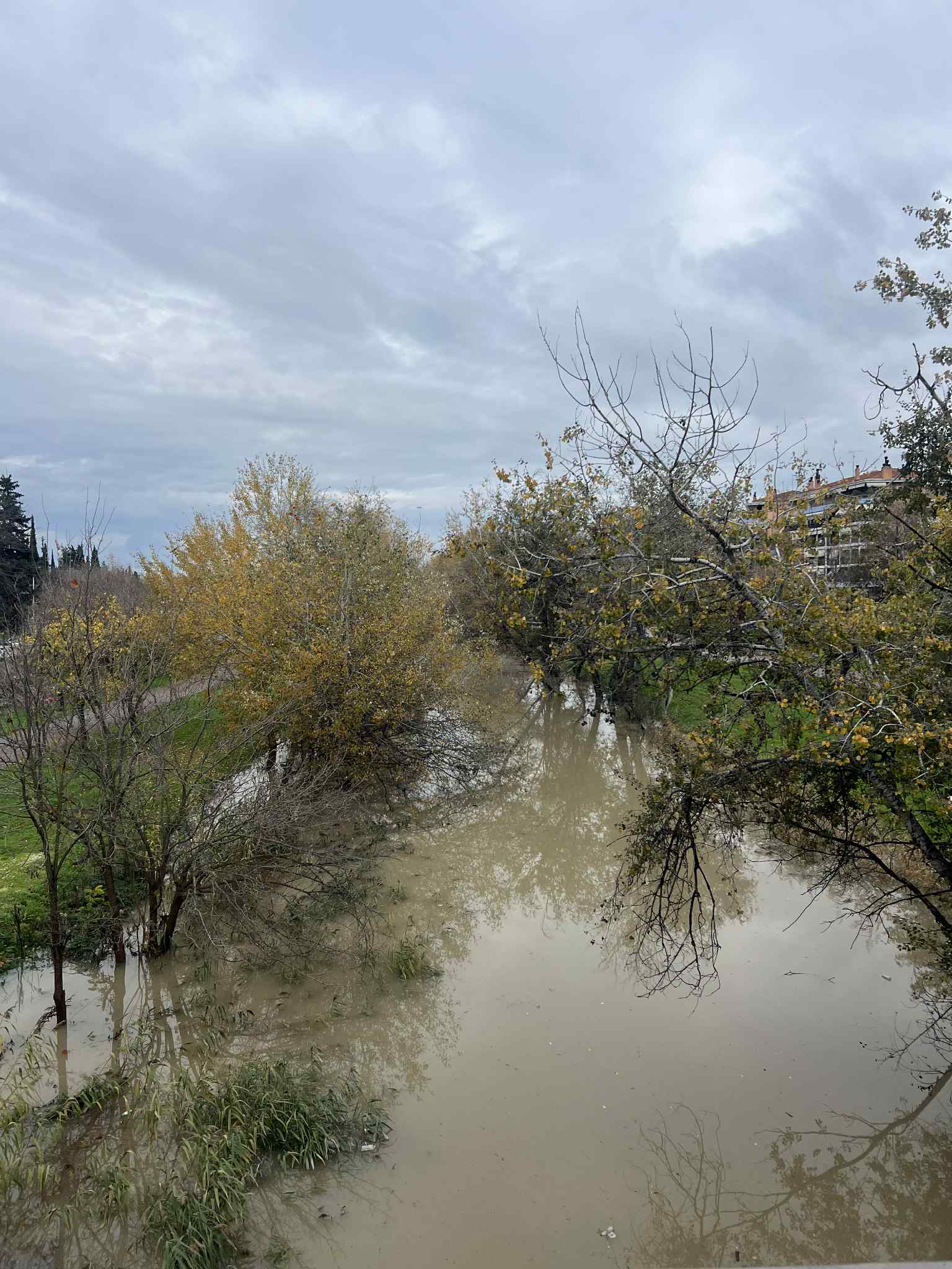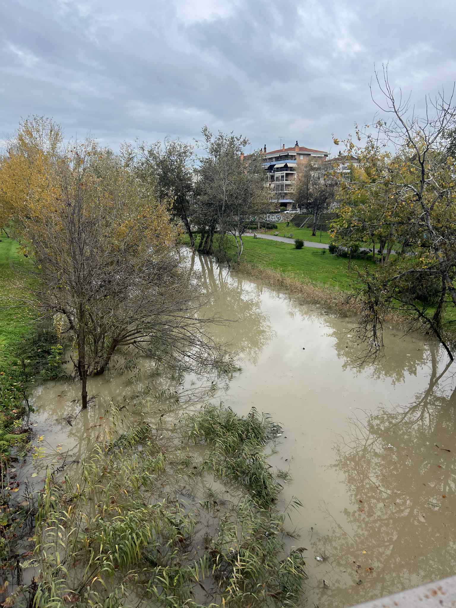 Στην εσωτερική κοίτη του Πηνειού υπάρχει άνοδος των υδάτων, όχι όμως απειλητική, όπως καταγράφεται από τα φωτογραφικά στιγμιότυπα.