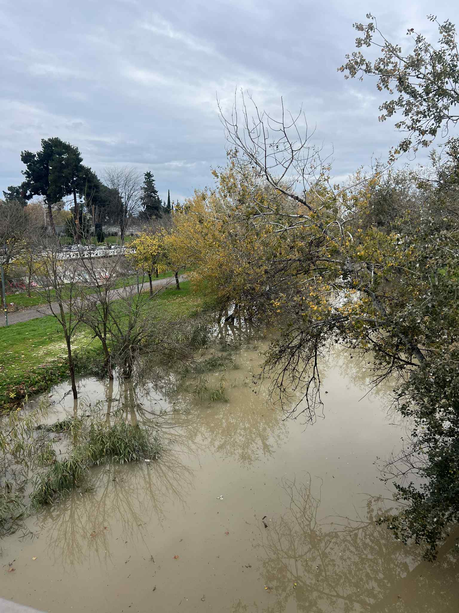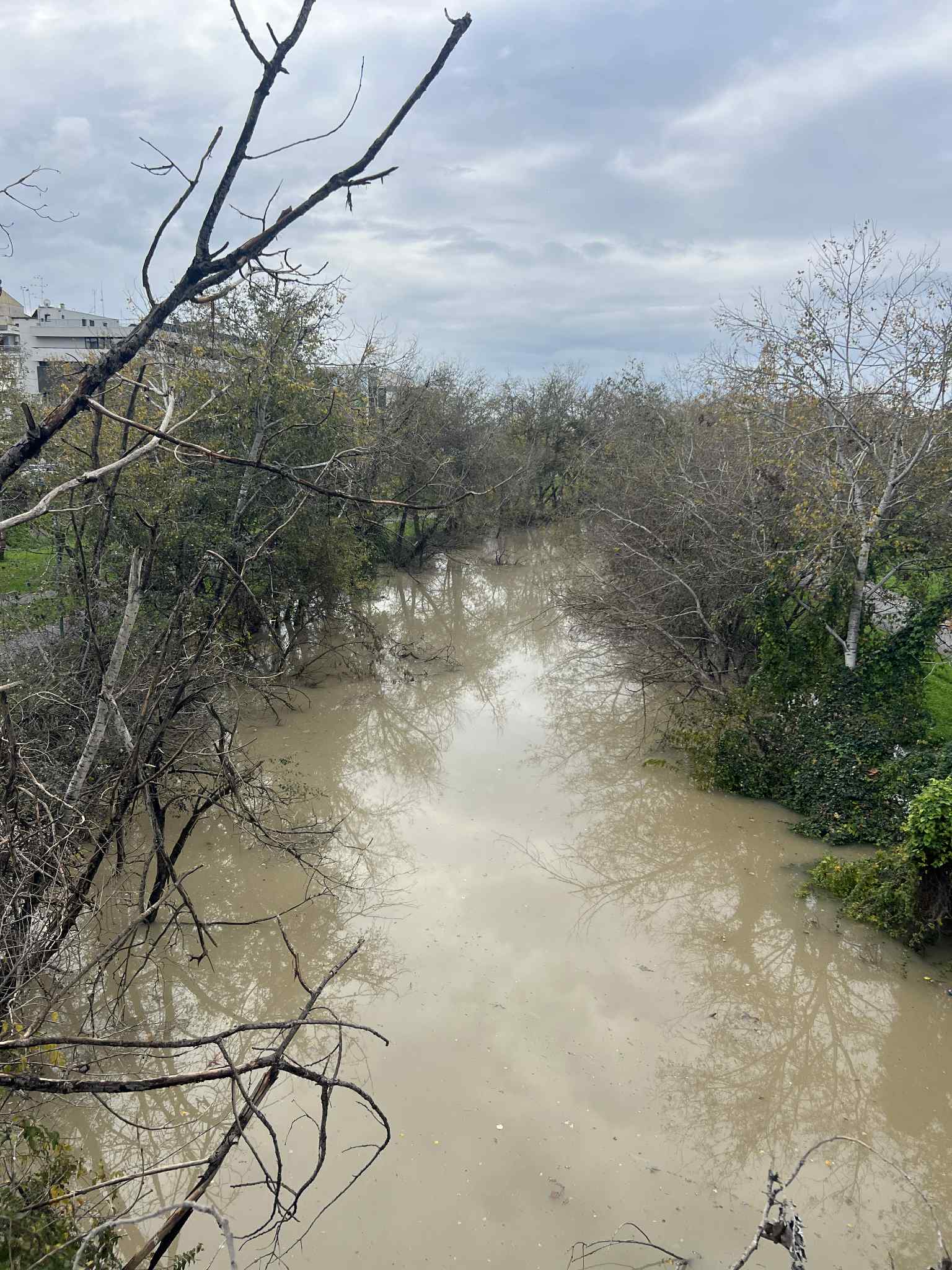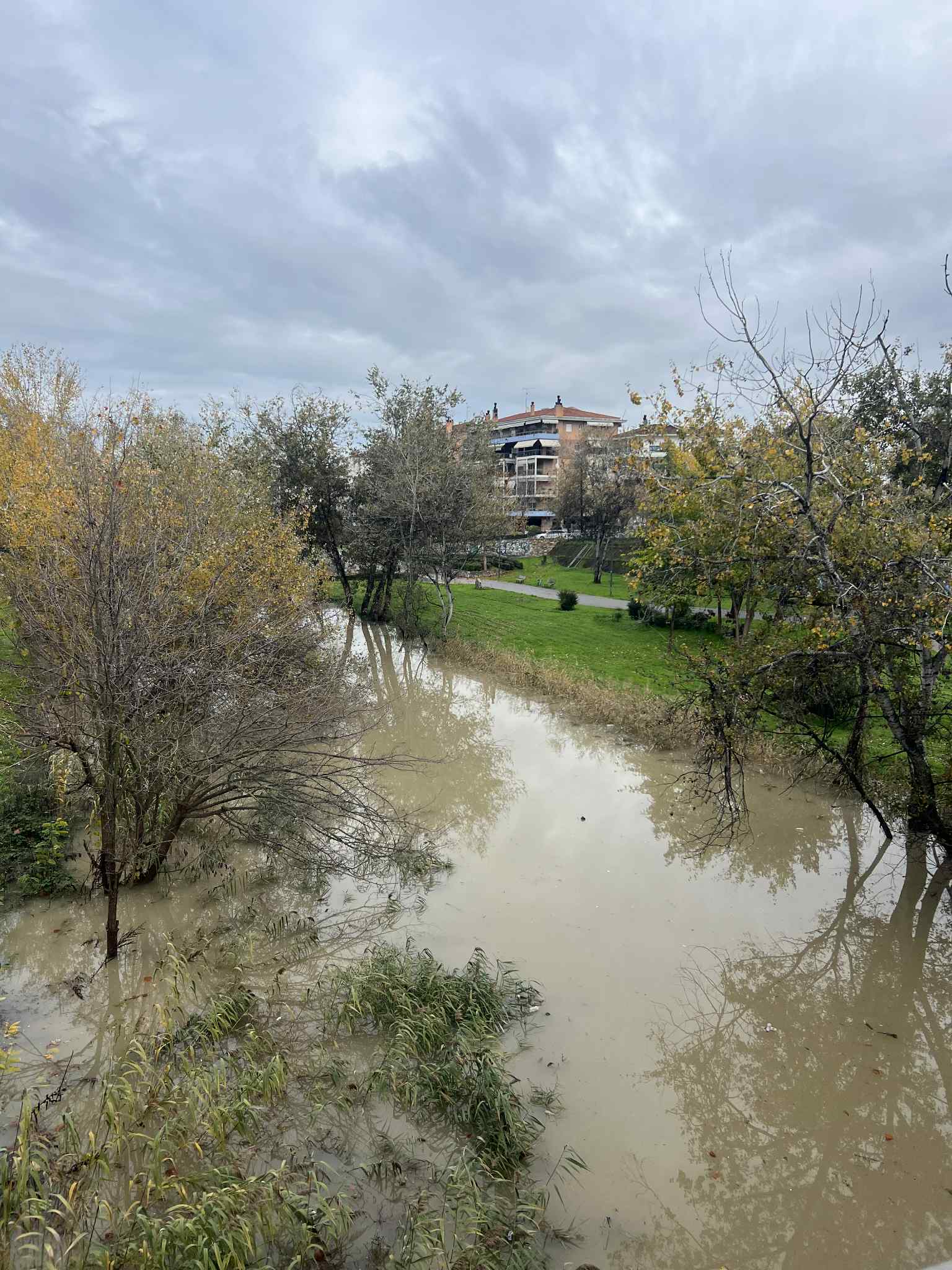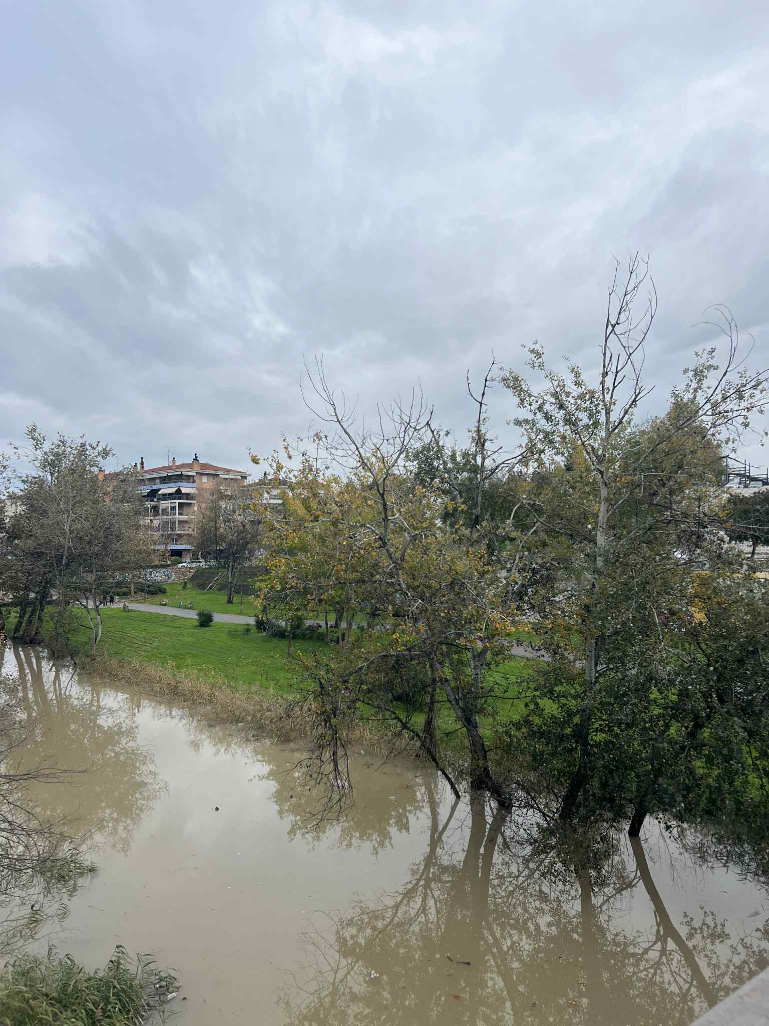 Στην εσωτερική κοίτη του Πηνειού υπάρχει άνοδος των υδάτων, όχι όμως απειλητική, όπως καταγράφεται από τα φωτογραφικά στιγμιότυπα.