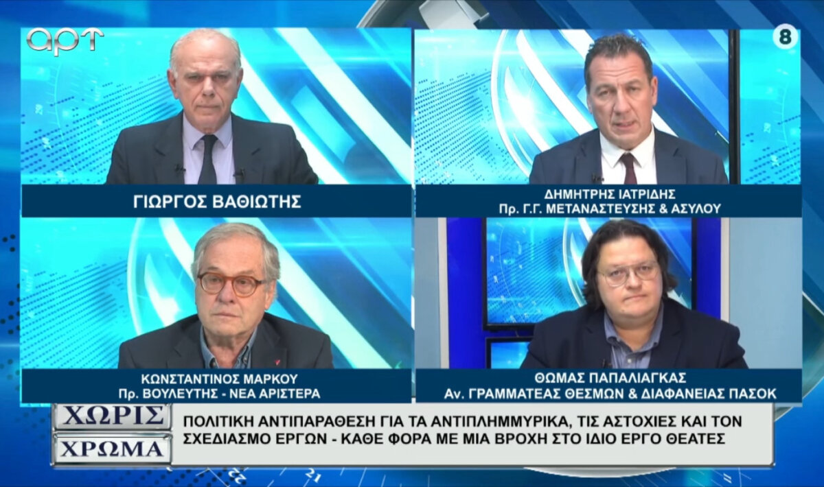 Την Παρασκευή 5 Δεκεμβρίου στην εκπομπή «Χωρίς Χρώμα» του Αρτ TV, με τον Γιώργο Βαθιώτη, ήταν καλεσμένος ο Θωμάς Παπαλιάγκας, Αναπληρωτής Γραμματέας Τομέα Θεσμών και Διαφάνειας του ΠΑΣΟΚ.