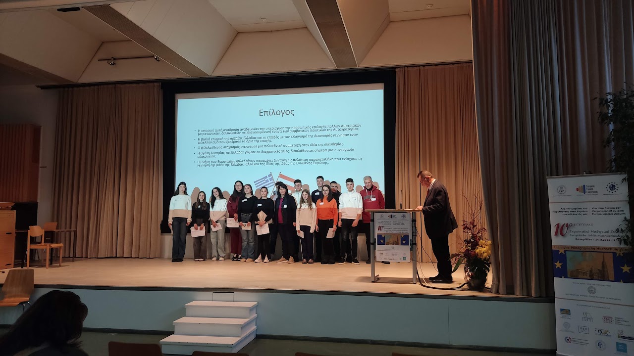 Με ιδιαίτερη επιτυχία και συνεργατικό πνεύμα, το Γυμνάσιο Λ.Τ. Βερδικούσας και το Γυμνάσιο Λ.Τ. Λιβαδίου συμμετείχαν από τις 24 έως τις 27 Νοεμβρίου 2025 στο 10ο Ευρωπαϊκό Επετειακό Μαθητικό Συνέδριο στη Βιέννη.