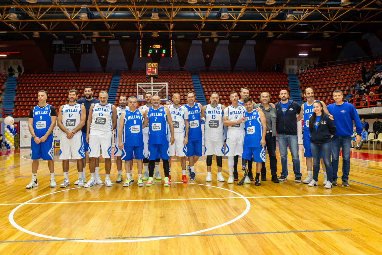 Κατά τη διάρκεια της αναμέτρησης, ανάμεσα στα τάιμ-άουτ, τα κορίτσια της σχολής χορού Independance παρουσίασαν εντυπωσιακά χορευτικά δρώμενα, προσφέροντας ζωντάνια, ρυθμό και κέφι στο κοινό, που τα υποδέχτηκε με θερμά χειροκροτήματα. Στη συνέχεια παρουσιάστηκαν οι ομάδες των ALL STAR – Βετεράνων , οι οποίες αγωνίστηκαν σε ένα παιχνίδι με έντονο συμβολισμό και μεγάλη συμμετοχή σημαντικών προσωπικοτήτων του ελληνικού αθλητισμού, όπως οι: Πρέλεβιτς Μπάνε, Μπουρούσης Γιάννης, Γιαννούλης Γιάννης, Κωνσταντινίδης Χρήστος, Κουτρούλιας Αποστόλης, Λάππας Ιωάννης, Μόρας Βαγγέλης, Καραποστόλου Σωτήρης, Αγγελακόπουλος Βασίλης, Παπακώστας Φάνης, Κουρδής Τάσος, Παπαχρήστος Γιάννης, Τσέλιος Κων/νος, Γκαντιάς Θανάσης,Λιάκος Θοδωρής, Παλάσκας Παναγιώτης οι οποίες απέσπασαν θερμό χειροκρότημα από το κοινό.