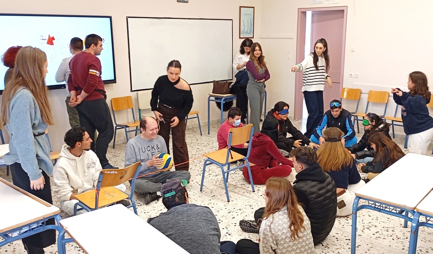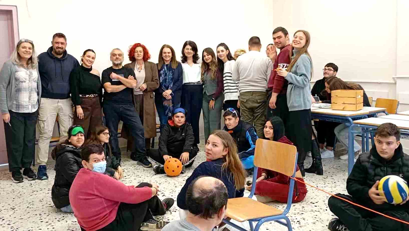 Το σχολείο υποδέχτηκε, στο πλαίσιο της σταθερής πλέον συνεργασίας με το Κέντρο Κοινότητας του Δήμου Τυρνάβου, το Κέντρο Δημιουργικής Απασχόλησης Ατόμων με Αναπηρία «ΜΕΑγάπη». Ωφελούμενοι του ΚΔΑΠ, μαζί με μαθητές, συμμετείχαν με ιδιαίτερη χαρά κι άριστη συνεργασία σε βιωματικό σεμινάριο, ενώ ενημερώθηκαν από τους ανθρώπους του ΚΔΑΠ και του Κέντρου Κοινότητας για θέματα αναπηρίας. Ιδιαίτερες ευχαριστίες στην Βίκυ Διαμαντή, ψυχολόγο – υπεύθυνη του ΚΔΑΠ, Χρύσα Γκουμότσιου, εκπαιδευτικό Φυσικής Αγωγής, Γιώργο Παπανικολάου, κοινωνιολόγο του Κέντρου Κοινότητας και Ευγενία Ιασωνίδου, εκπαιδευτικό του σχολείου.
