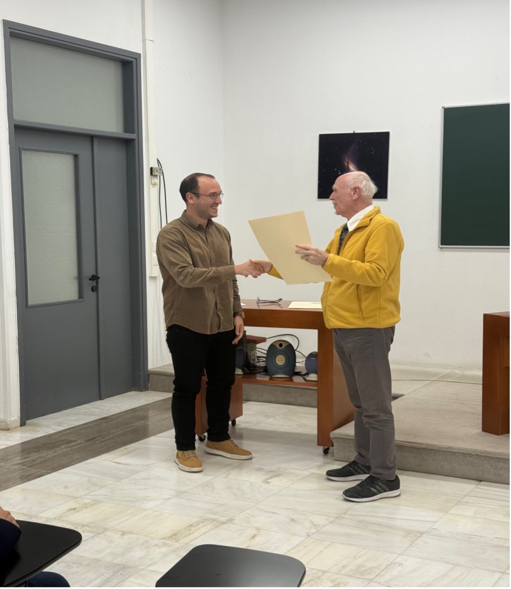 Ο Ηλίας Κυρίτσης, πρόσφατος διδάκτορας του Τμήματος Φυσικής και του Ινστιτούτου Αστροφυσικής, έλαβε το Βραβείο Έρευνας «Ελευθέριος Ν. Οικονόμου» για το έτος 2025. Το βραβείο απονέμεται σε διδακτορικό φοιτητή και αναγνωρίζει την προστιθέμενη αξία του Τμήματος Φυσικής ως χώρου όπου ταλαντούχοι νέοι μπορούν να διεξάγουν έρευνα διεθνούς βεληνεκούς στην Ελλάδα. Ο κ. Κυρίτσης το έλαβε για την εργασία του «The first all-sky survey of star-forming galaxies with eROSITA: Scaling relations and a population of X-ray luminous starbursts», που δημοσιεύτηκε στο περιοδικό Astronomy & Astrophysics το 2025. Θα συνεχίσει την έρευνά του ως μεταδιδακτορικός υπότροφος στο Max Planck Institute of Extraterrestrial Physics στο Μόναχο (Γερμανία).