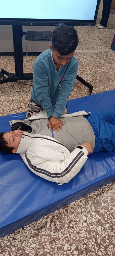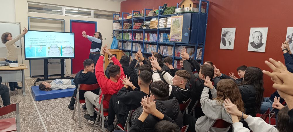 Οι μαθητές συμμετείχαν ενεργά, παρακολουθώντας την επίδειξη των τεχνικών, θέτοντας ερωτήσεις και συμμετέχοντας στη συζήτηση, γεγονός που έκανε τη δράση ακόμη πιο διαδραστική και εποικοδομητική. Παράλληλα, προβλήθηκε ενημερωτικό PowerPoint, το οποίο βοήθησε στη σαφή κατανόηση των βημάτων και των διαδικασιών των Πρώτων Βοηθειών.