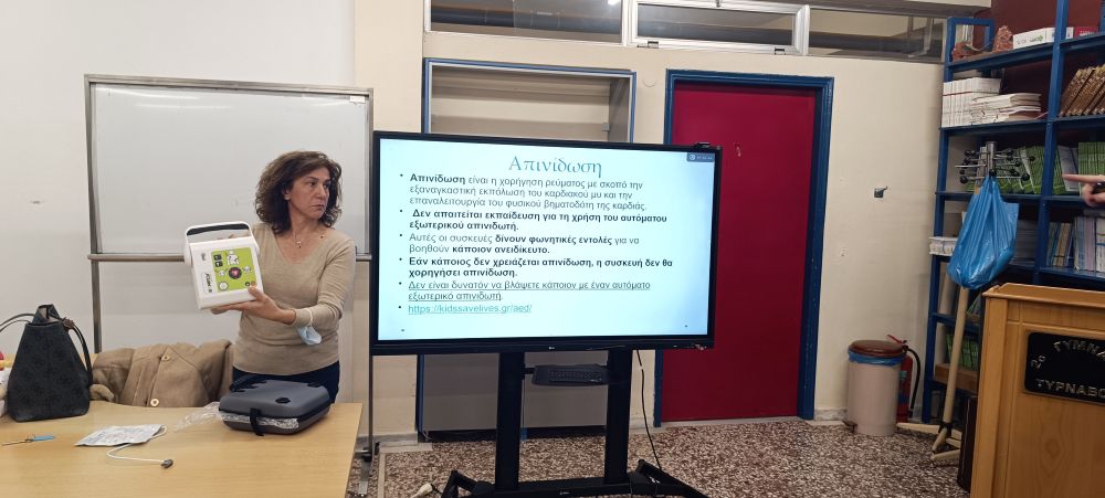 Ο Διευθυντής του σχολείου, κ. Νίκος Πορτέσης, ο Σύλλογος Διδασκόντων και όλο το προσωπικό ευχαριστούν θερμά τις δύο επαγγελματίες υγείας για την άρτια και επιστημονικά τεκμηριωμένη ενημέρωση. Επιπλέον, ενημερώνουν ότι ο νέος απινιδωτής θα είναι διαθέσιμος και για τους συμπολίτες μας σε περίπτωση ανάγκης.