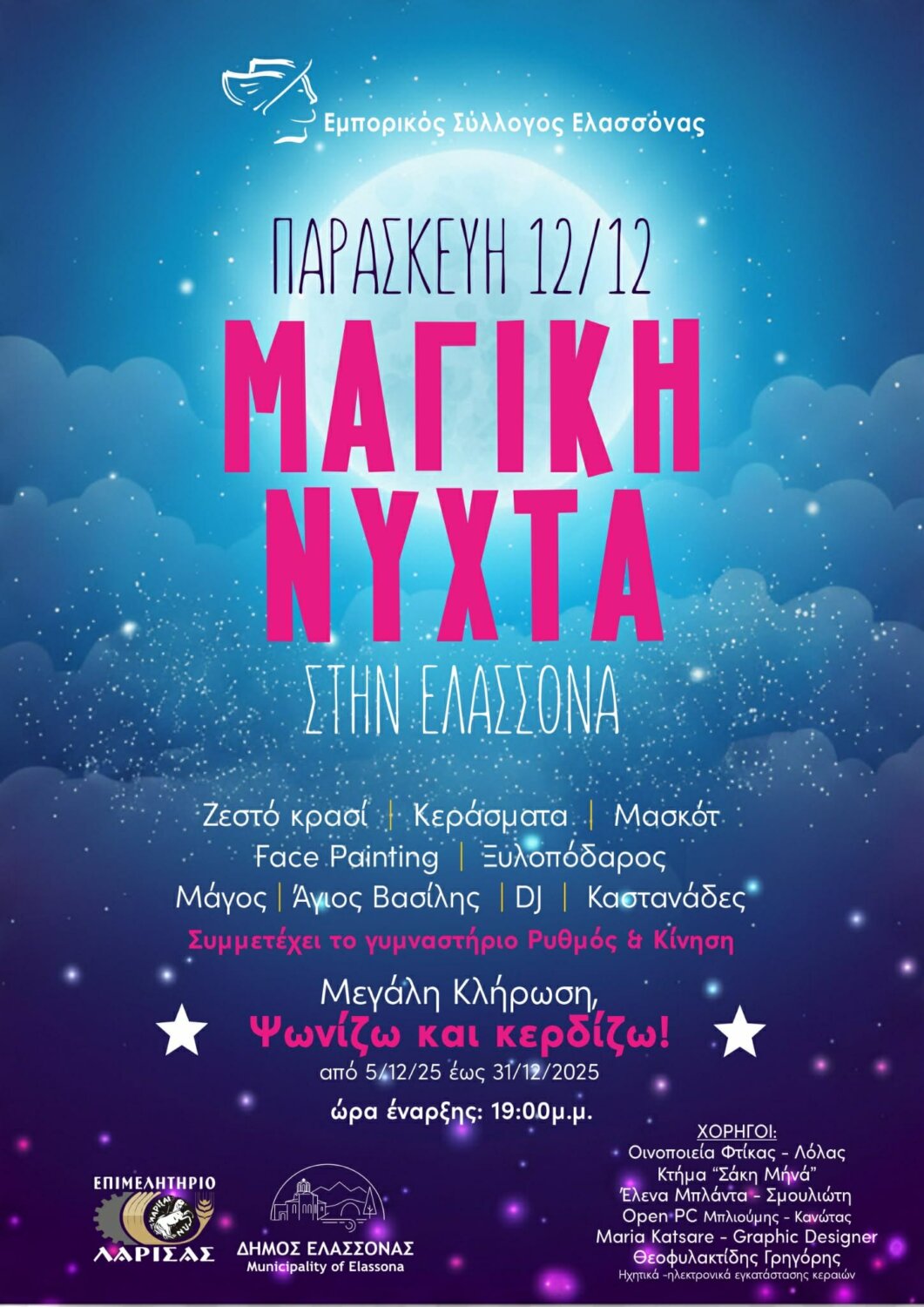 Μια νύχτα που ενώνει την πόλη, ζεσταίνει τις καρδιές και ανοίγει τις γιορτές όπως μόνο η Ελασσόνα ξέρει.