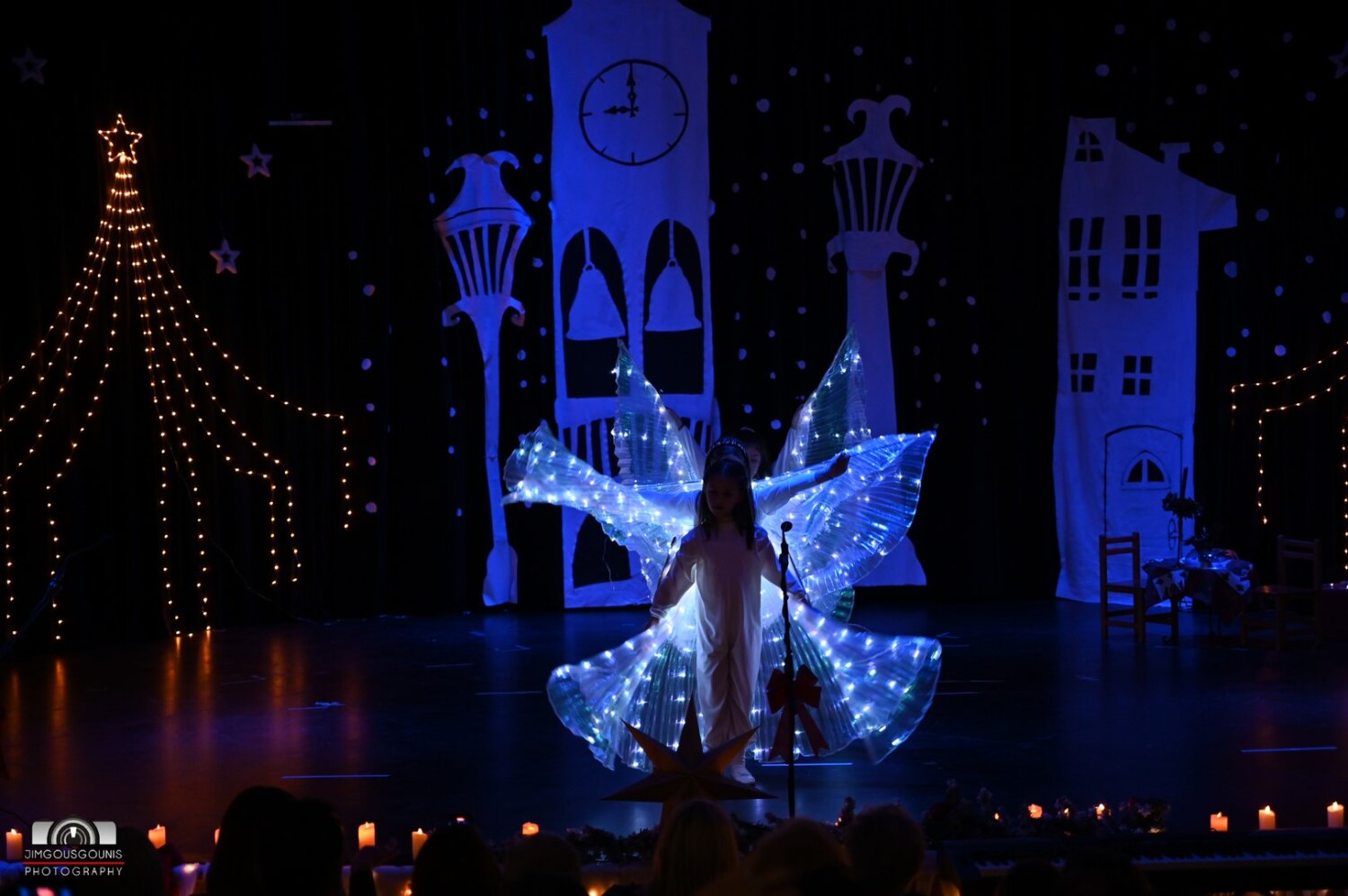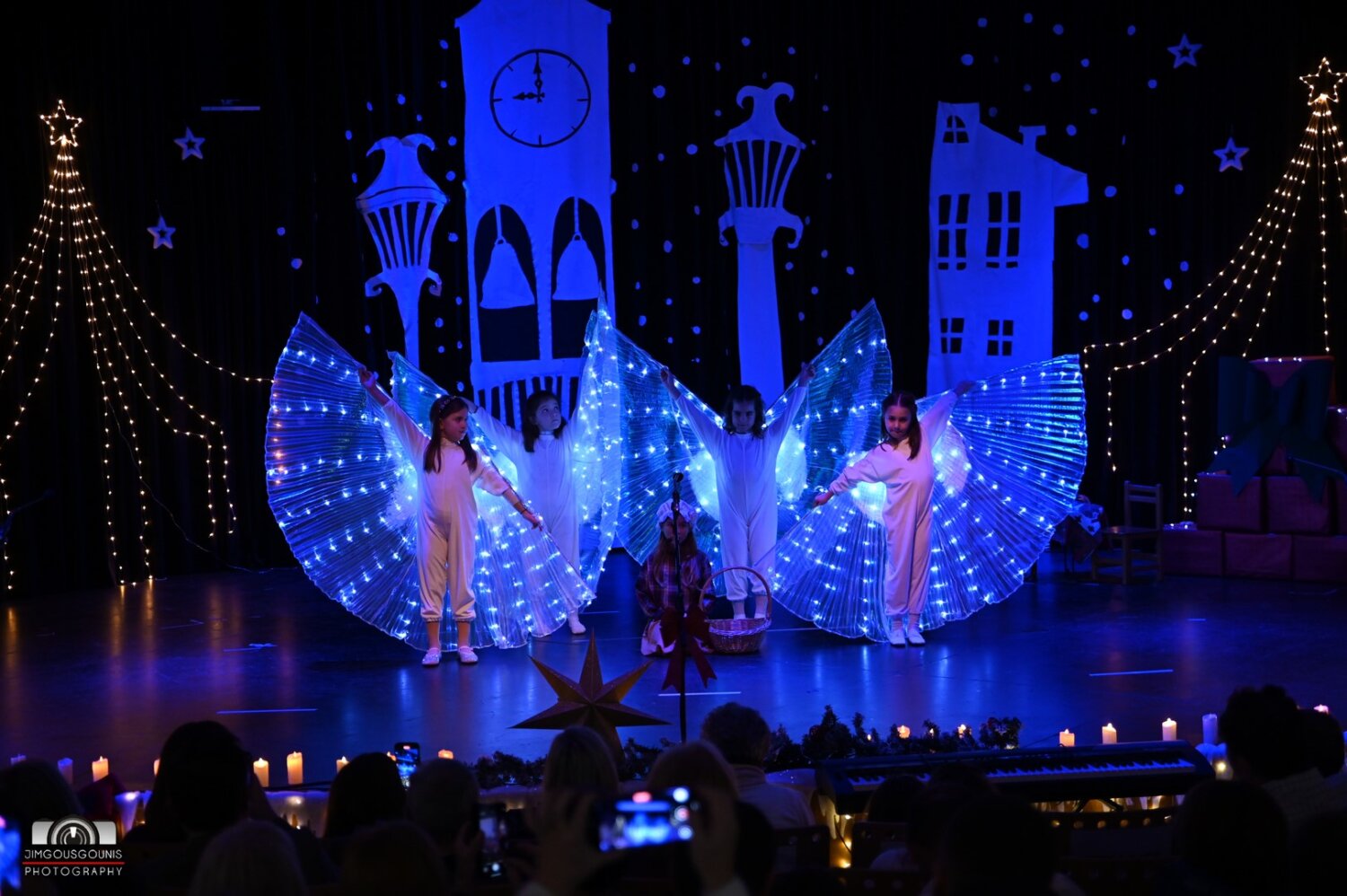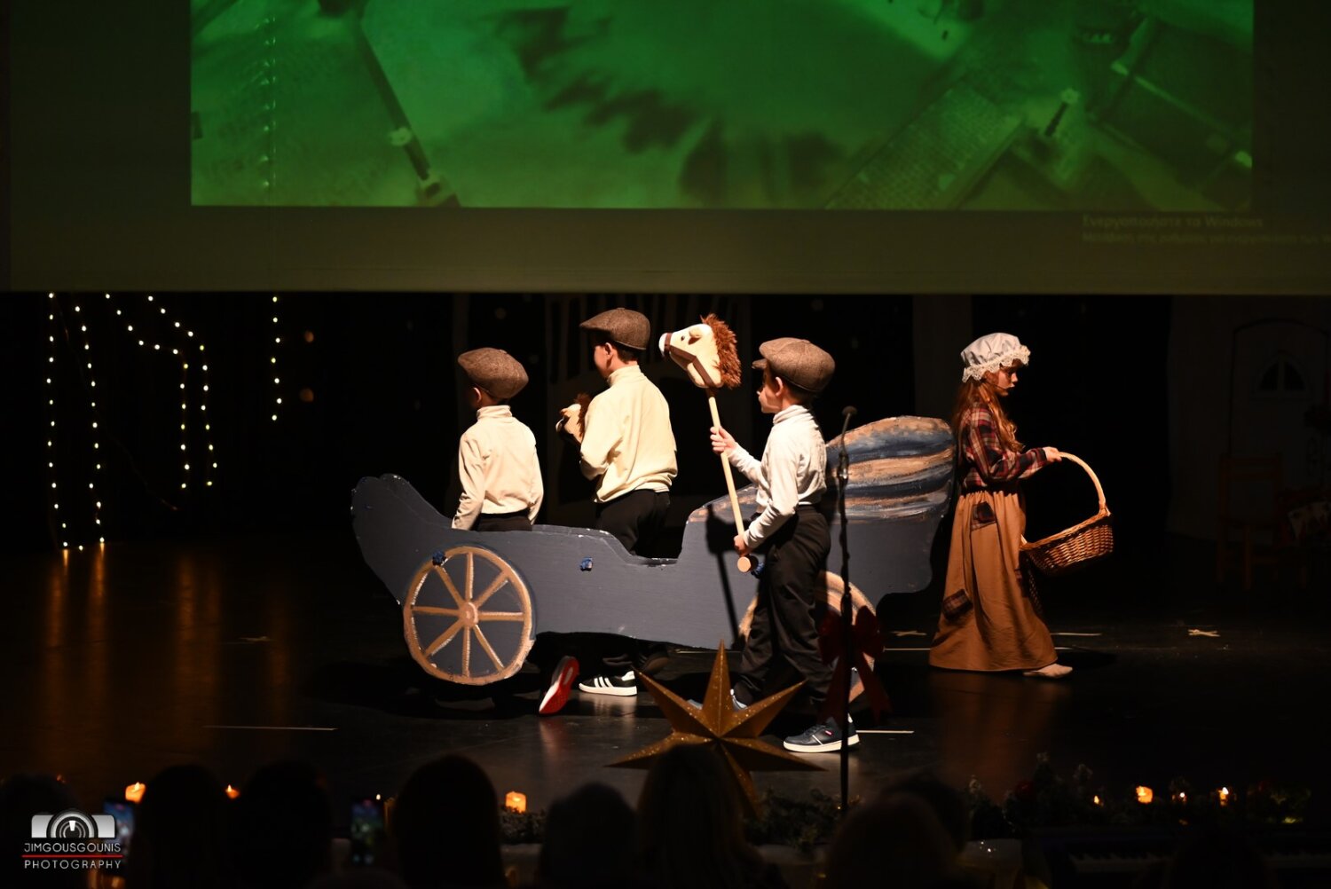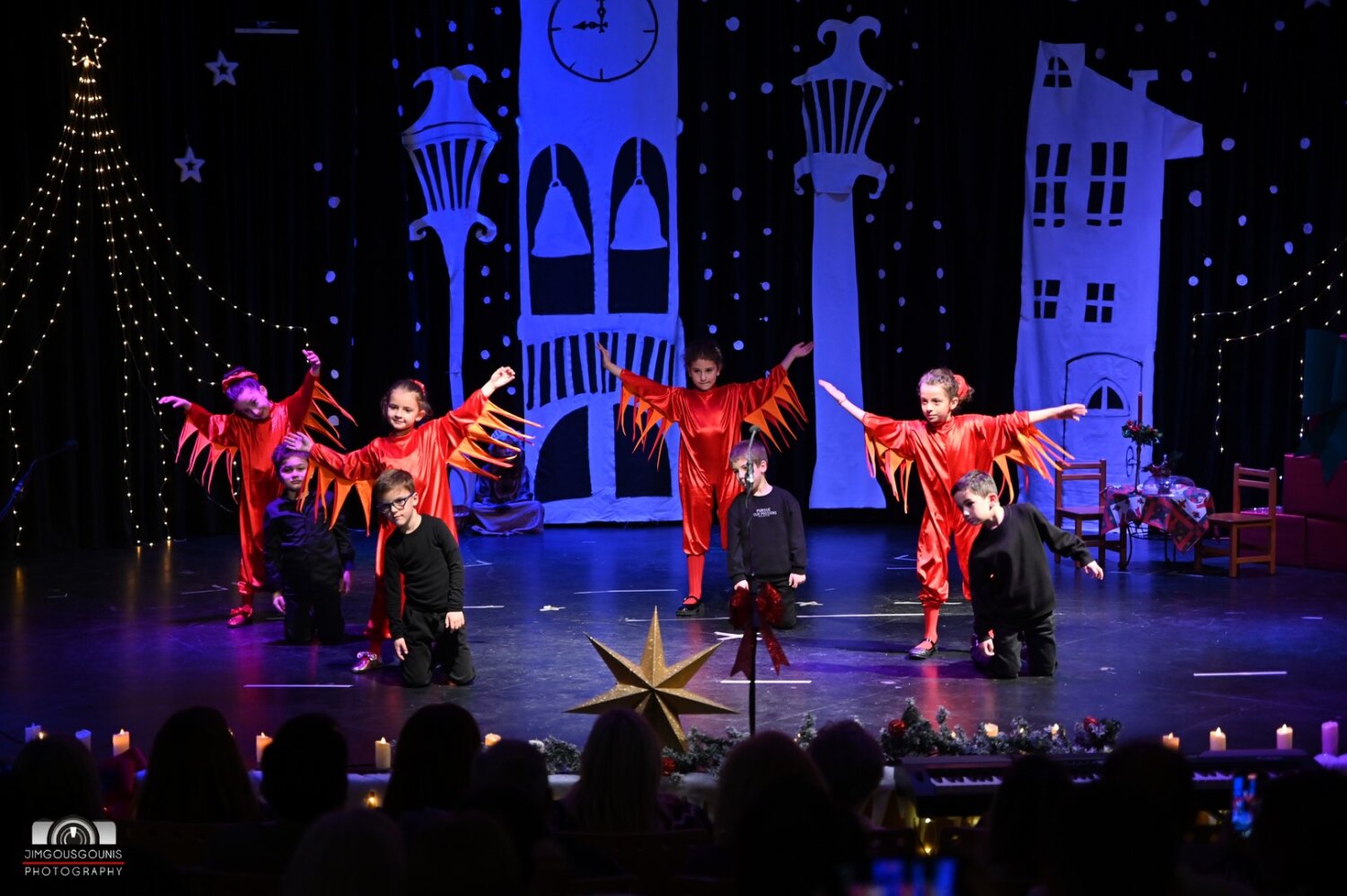 Τα εντυπωσιακά σκηνικά, η προσεγμένη χριστουγεννιάτικη διακόσμηση, τα γιορτινά τραγούδια της χορωδίας – τόσο στα ελληνικά όσο και στα αγγλικά – και οι όμορφες χορευτικές συνθέσεις, δημιούργησαν μια ζεστή και μαγευτική ατμόσφαιρα. Πάνω απ’ όλα, η εξαιρετική θεατρική απόδοση των μικρών πρωταγωνιστών συνέβαλε στο να ζήσουν όλοι – γονείς, εκπαιδευτικοί και παιδιά – μια πραγματικά φαντασμαγορική και συγκινητική γιορτή, γεμάτη ουσιαστικά χριστουγεννιάτικα μηνύματα.