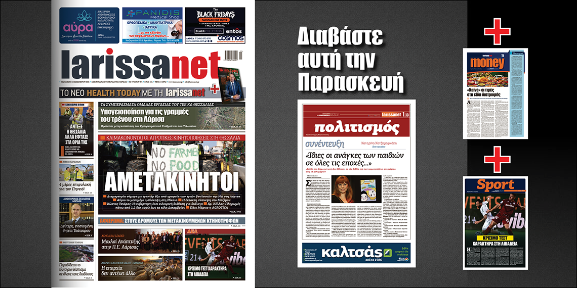 Ρεπορτάζ, άρθρα, συνεντεύξεις και όλο το παρασκήνιο της εβδομάδας στο νέο φύλλο της larissanet.