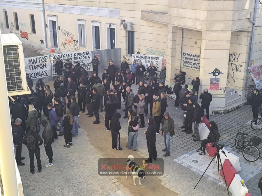 Έξω από το δικαστήριο της Καρδίτσας είχαν συγκεντρωθεί συγγενείς και φίλοι της οικογένειας και του Βασίλη Μάγγου, όπως και μέλη συλλογικοτήτων, που πραγματοποίησαν πορεία μετά την απόφαση της διακοπής στο κέντρο της Καρδίτσας, ενώ ισχυρή ήταν η αστυνομική δύναμη έξω από το δικαστικό μέγαρο.