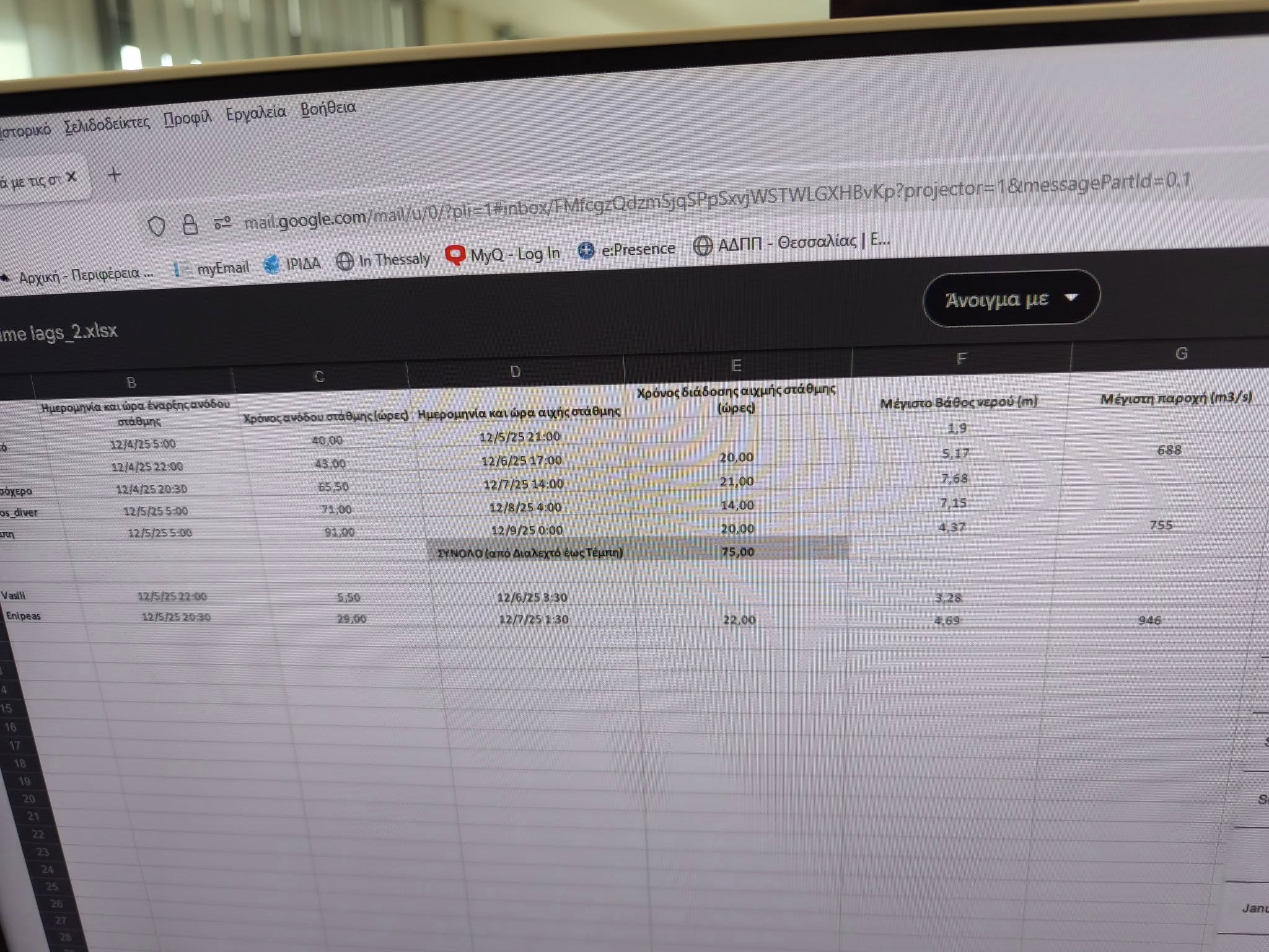 “Ζητήσαμε από το ΕΛΚΕΘΕ τα στοιχεία των παροχών του νερού που κατέβασαν τα ποτάμια στην πρόσφατη καταιγίδα Byron και μας τα έστειλαν . Έχει ενδιαφέρον να δούμε τρία σημεία που ρίχνουν ότι η ποσότητα νερού ήταν ακριβώς όπως του Ιανού . Στο δε κομμάτι του Ενιπέα ( και μόνο εκεί) η παροχή του Byron ήταν το 80% του Daniel. Επομένως ήταν λογικό να μην αντέξει η προσωρινή διάταξη στην Αμπελιά. Βάζω από κάτω τα πραγματικά στοιχεία