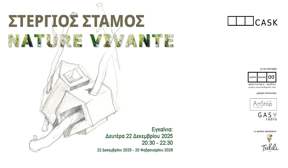 Η CASK απευθύνει κάλεσμα για τα εγκαίνια της έκθεσης του Στέργιου Στάμου, NATURE VIVANTE, τη Δευτέρα, 22 Δεκεμβρίου 2025.