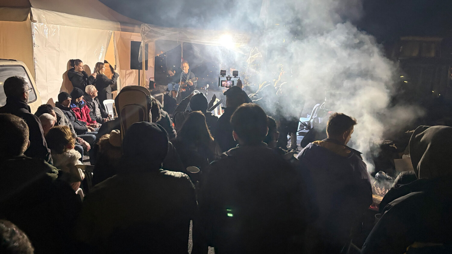 Χαιρετισμός εκ μέρους του Παραρτήματος Λάρισας του Πανελλήνιου Μουσικού Συλλόγου στην συναυλία που διοργάνωσε στο Μπλόκο της Νίκαιας: