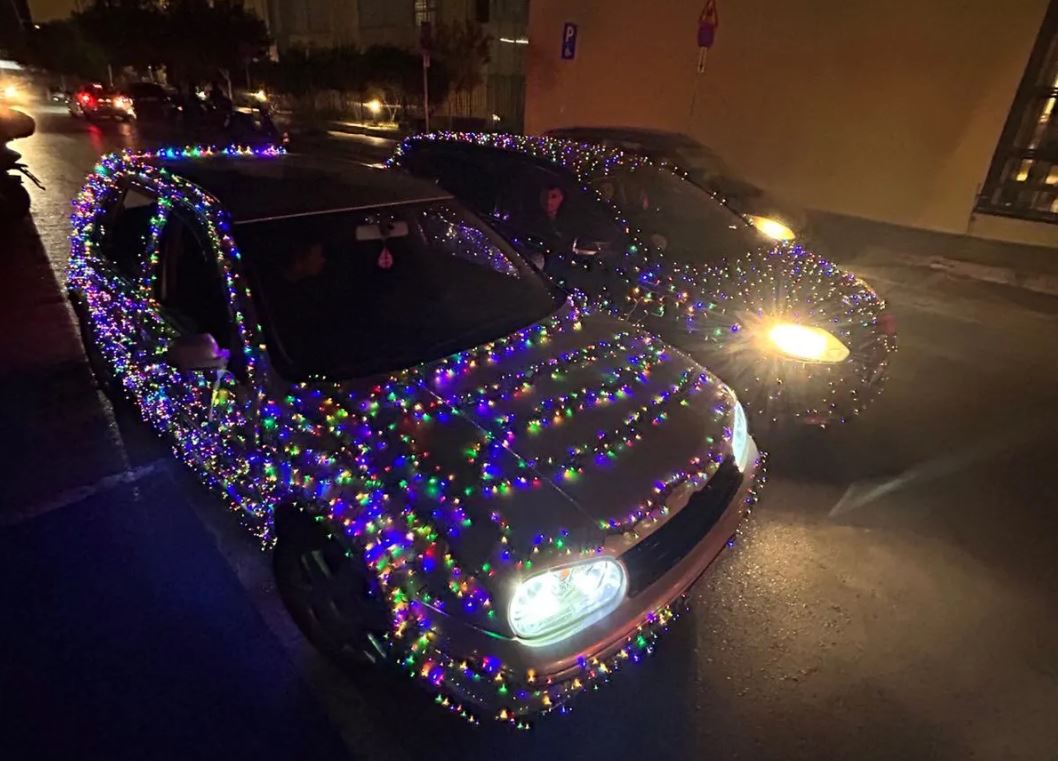 Όπως αναφέρει το patris.gr, ολοένα και περισσότεροι νέοι υιοθετούν την τάση του χριστουγεννιάτικου στολισμού οχημάτων με φωτάκια και πρωτότυπα αξεσουάρ. Ένας από τους νεαρούς που δοκίμασαν να «μεταμορφώσουν» το όχημά τους, είναι και ο Παντελής, φοιτητής και εργαζόμενος στο Ηράκλειο, του οποίου το αυτοκίνητο έχει γίνει θέμα συζήτησης στα social media.