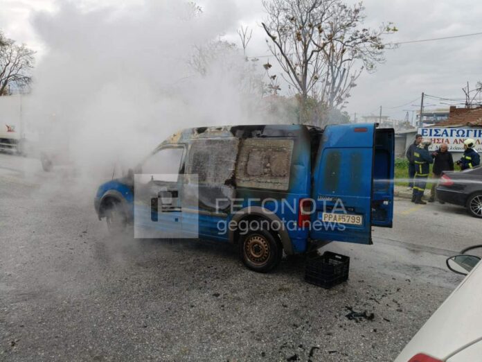 Η φωτιά ξεκίνησε από την μηχανή του οχήματος και ο ηλικιωμένος οδηγός, αμέσως μόλις την αντιλήφθηκε, ακινητοποίησε το όχημα.
