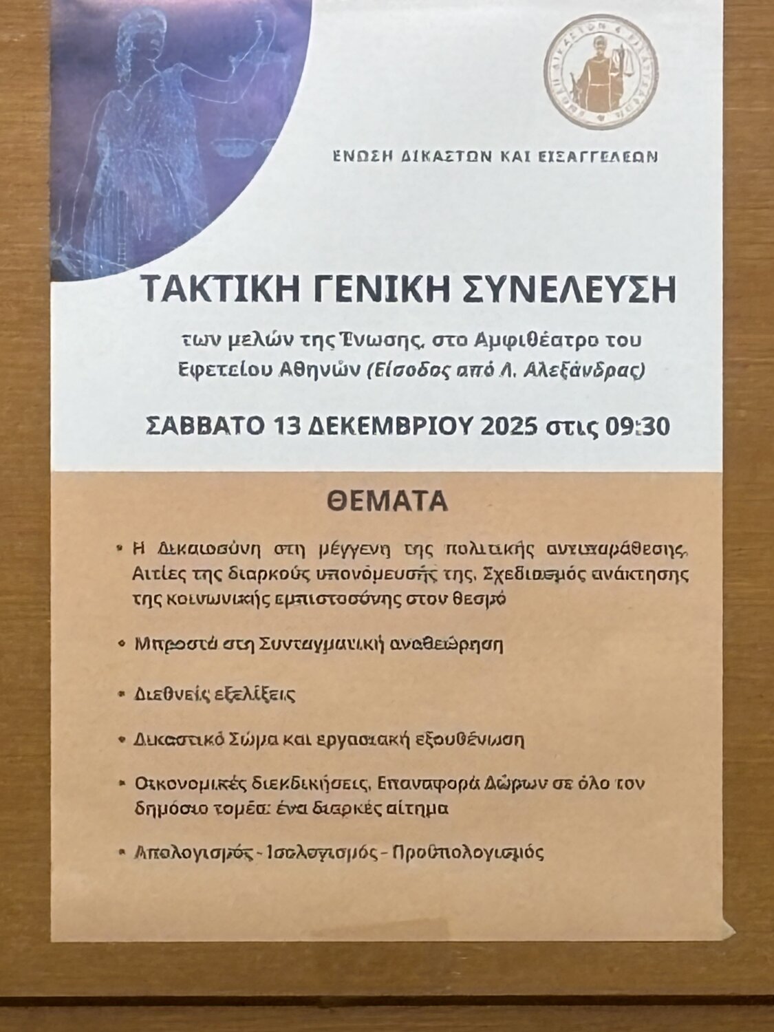 Στην έναρξη των εργασιών της Ετήσιας Τακτικής Γενικής Συνέλευσης της Ένωσης Δικαστών και Εισαγγελέων παρευρέθηκε η Τομεάρχης Δικαιοσύνης, Θεσμών & Διαφάνειας του ΠΑΣΟΚ-ΚΙΝΑΛ και βουλευτής Λάρισας, Ευαγγελία Λιακούλη εκπροσωπώντας το ΠΑΣΟΚ -ΚΙΝΑΛ και τον Πρόεδρο κ. Νίκο Ανδρουλάκη.