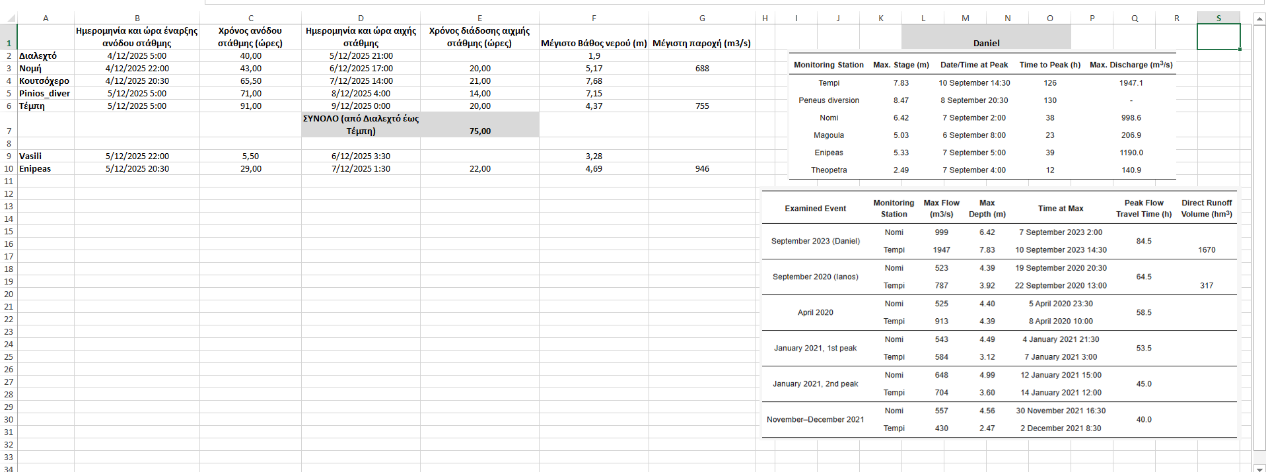 Μετά η προσοχή μας έπεσε στην περιοχή των Φαρσάλων, στον Ενιπέα και στις ποσότητες νερού που κατέβαιναν από τα ορεινά των Τρικάλων και της Καρδίτσας. Την Παρασκευή, 5 Δεκεμβρίου, παρατηρήθηκε μια τεράστια αύξηση της στάθμης των ποταμών του Ενιπέα στο ύψος του οικισμού Βασιλί. Μέσα σε 3 ώρες ανέβηκε από 0,25 μέτρα σε 3 μέτρα. Καταλάβαμε ότι κάτι περίεργο συμβαίνει και είμασταν σε επιφυλακή για όποια εξέλιξη, παρακολουθώντας συνεχώς και τα επόμενα σταθμήμετρα στο Κεραμίδι, στον Πηνειό στη θέση Κουτσόχερο, στη θέση Diver, στο ύψος του Ομορφοχωρίου και στα Τέμπη.