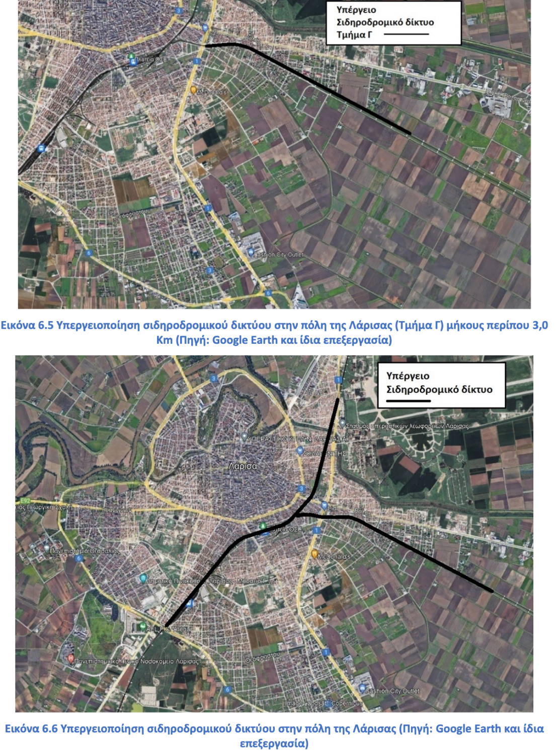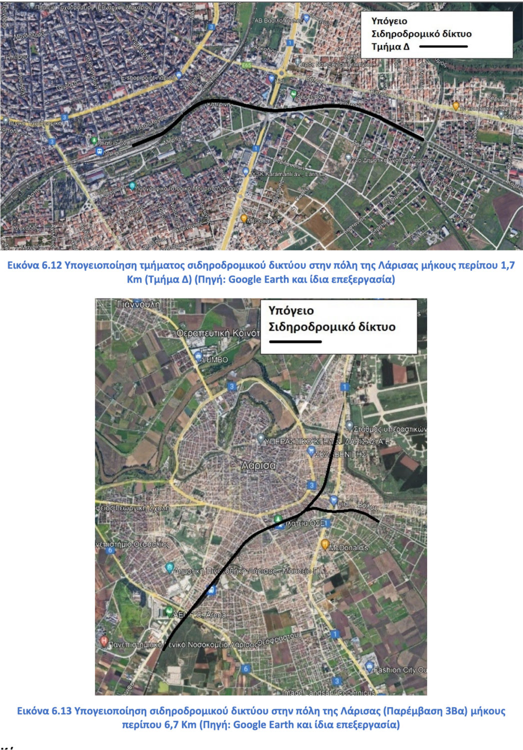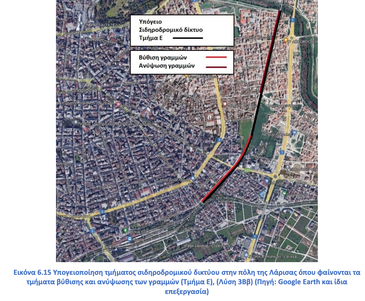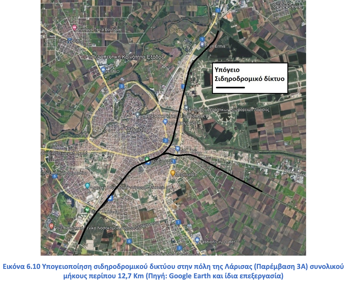 - Τεχνικές λύσεις: Αναλύθηκε το εύρος των έξι συνολικά πιθανών τεχνικών λύσεων που εξετάστηκαν ειδικά για τη Λάρισα. Οι λύσεις αυτές εκτείνονται από το μηδενικό σενάριο και την Υπεργειοποίηση (Flyover), μέχρι τη βύθιση, την Υπογειοποίηση και τις εναλλακτικές χαράξεις (Παρακάμψεις).