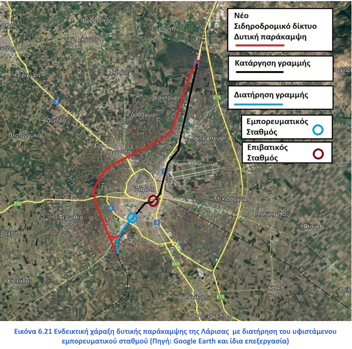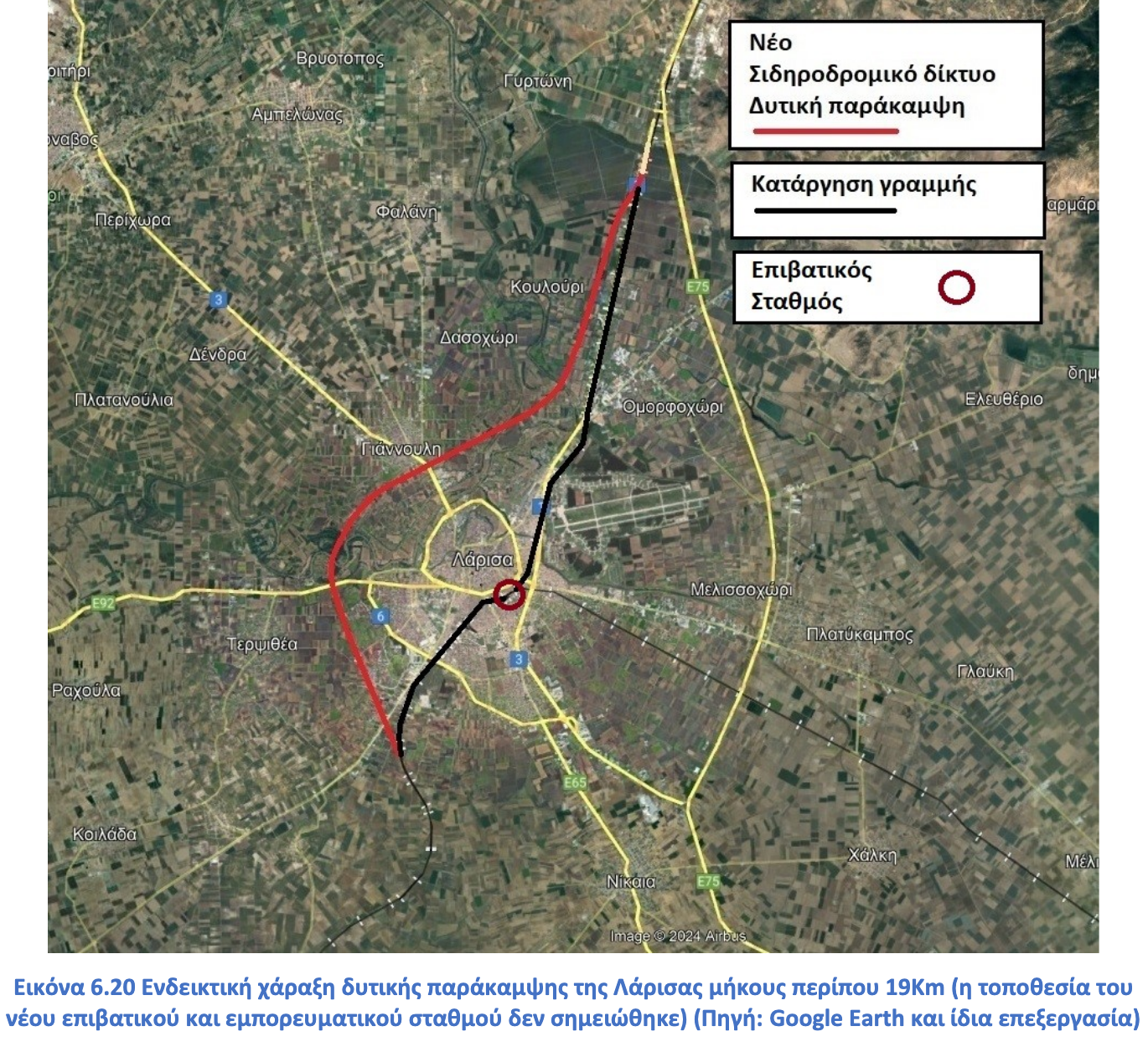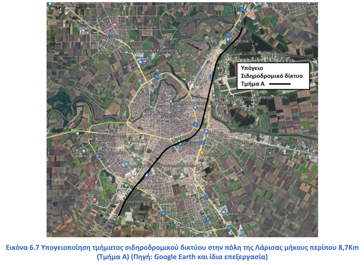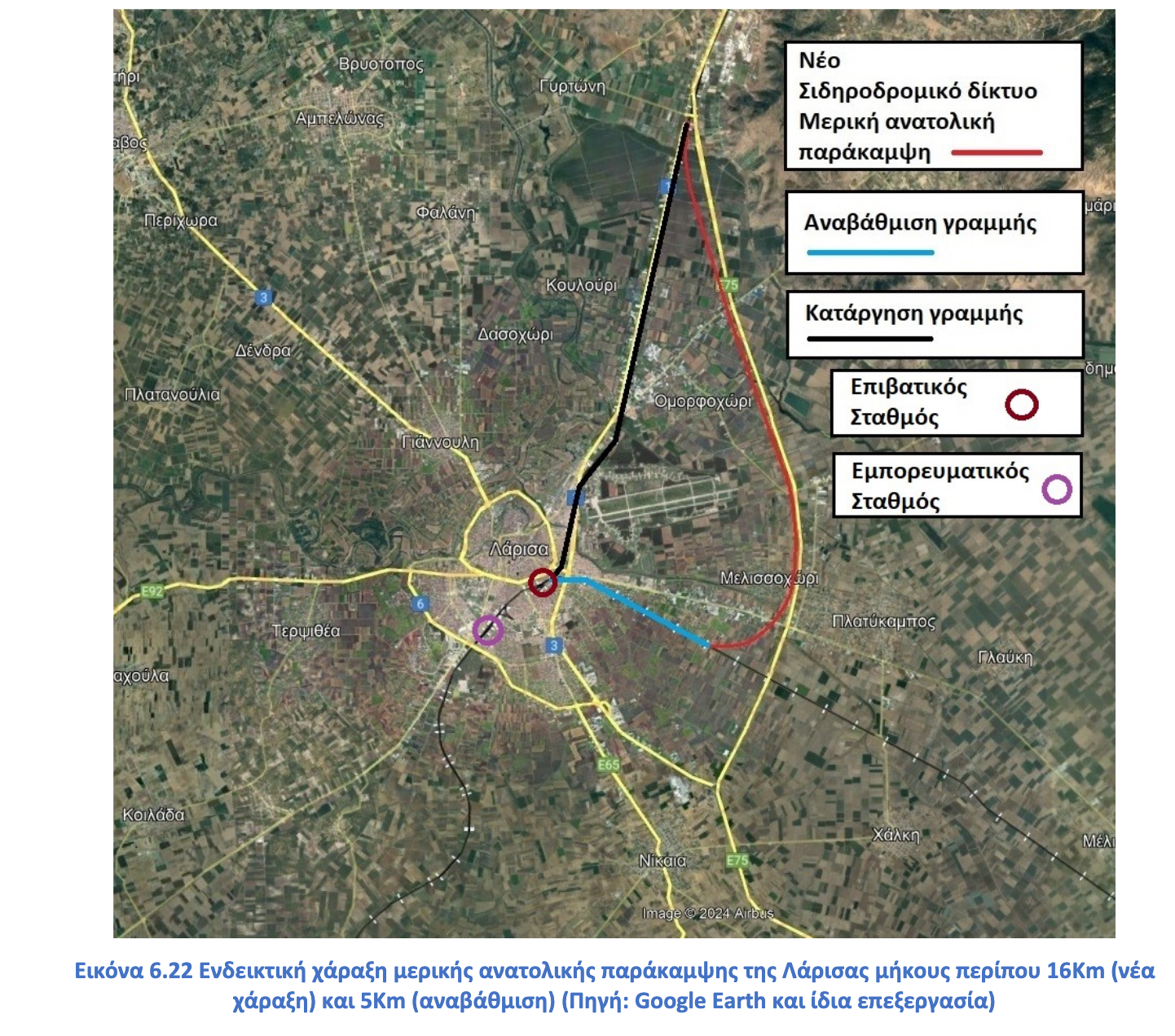 - Τεχνικές λύσεις: Αναλύθηκε το εύρος των έξι συνολικά πιθανών τεχνικών λύσεων που εξετάστηκαν ειδικά για τη Λάρισα. Οι λύσεις αυτές εκτείνονται από το μηδενικό σενάριο και την Υπεργειοποίηση (Flyover), μέχρι τη βύθιση, την Υπογειοποίηση και τις εναλλακτικές χαράξεις (Παρακάμψεις).