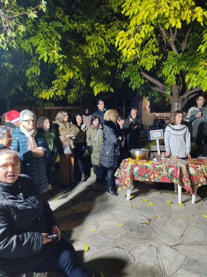 Η εκδήλωση ξεκίνησε με ομιλία της Προέδρου του Συλλόγου Μορφωτικός Εκπολιτιστικός Σύλλογος “ΠΕΡΑ ΜΑΧΑΛΑ” Αλεξάνδρα Αντωνίου. Αφού καλωσόρισε όλους παρευρισκόμενους, αναφέρθηκε στην συλλογική προσπάθεια του Συλλόγου για την διατήρηση της πολιτιστικής κληρονομιάς μέσω της παράδοσης και των εθίμων. Ευχαρίστησε τους κατοίκους της συνοικίας, τον ιερέα, τους επισκέπτες, τους εθελοντές και χορηγούς για την συμμετοχή τους στην εκδήλωση.