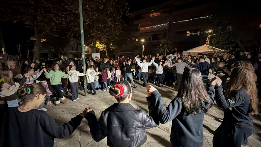Τέλος με την αντίστροφη μέτρηση, το δέντρο φωτίστηκε και η πλατεία γέμισε φως και χειροκροτήματα. Το παιδικό τμήμα του Συλλόγου έψαλε τα κάλαντα και ακολούθησαν παραδοσιακοί χοροί από το παιδικό και εφηβικό τμήμα, που προετοίμασε με ζήλο και μεράκι ο χοροδιδάσκαλος Δημήτριος Μπούτλας.