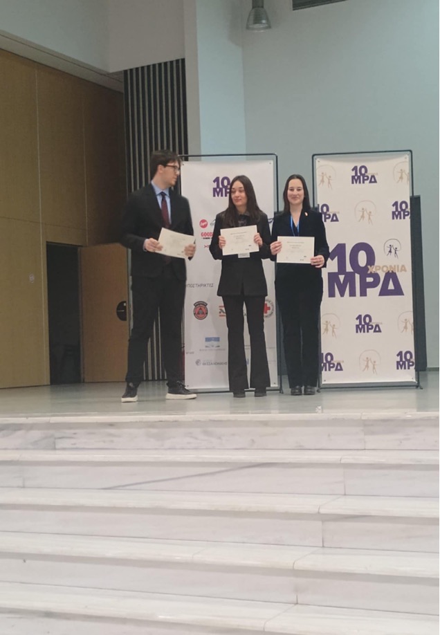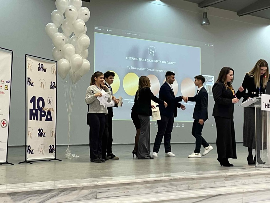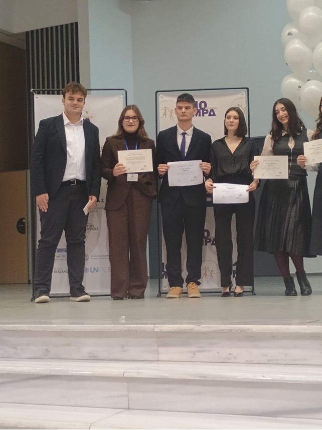 Ο μαθητής της Γ’ τάξης, Νικόλαος Μπλάκος, απέσπασε 1ο Βραβείο και αναδείχθηκε ο καλύτερος εμπειρογνώμονας στην επιτροπή για το Δικαίωμα του παιδιού στην εκπαίδευση, εκπροσωπώντας τις Φιλιππίνες. Παράλληλα, αναδείχθηκε- έπειτα από ψηφοφορία- εισηγητής της επιτροπής, εκφωνώντας την ημέρα της απονομής των βραβείων λόγο στο συνεδριακό κέντρο «Ιωάννης Βελλίδης» όπου πραγματοποιήθηκε η τελετή.