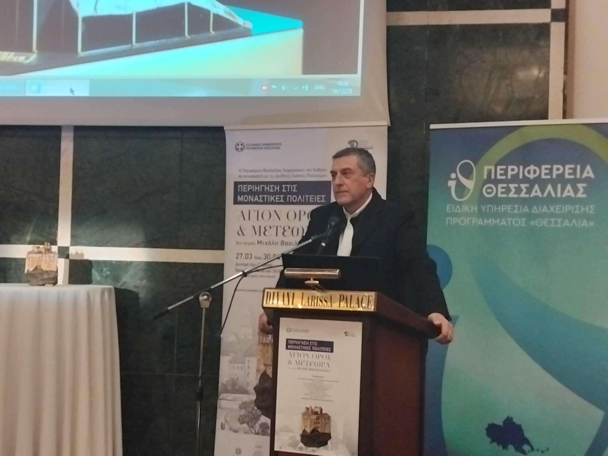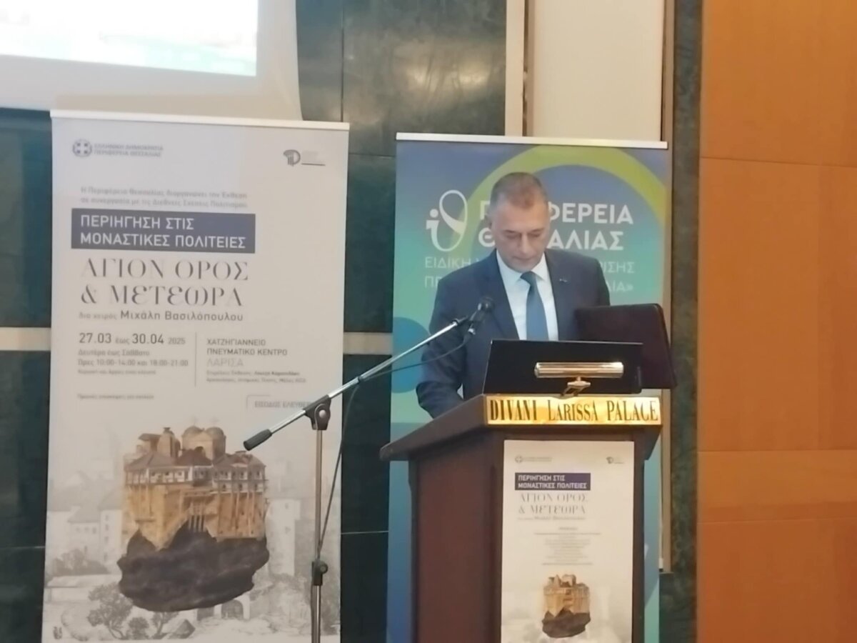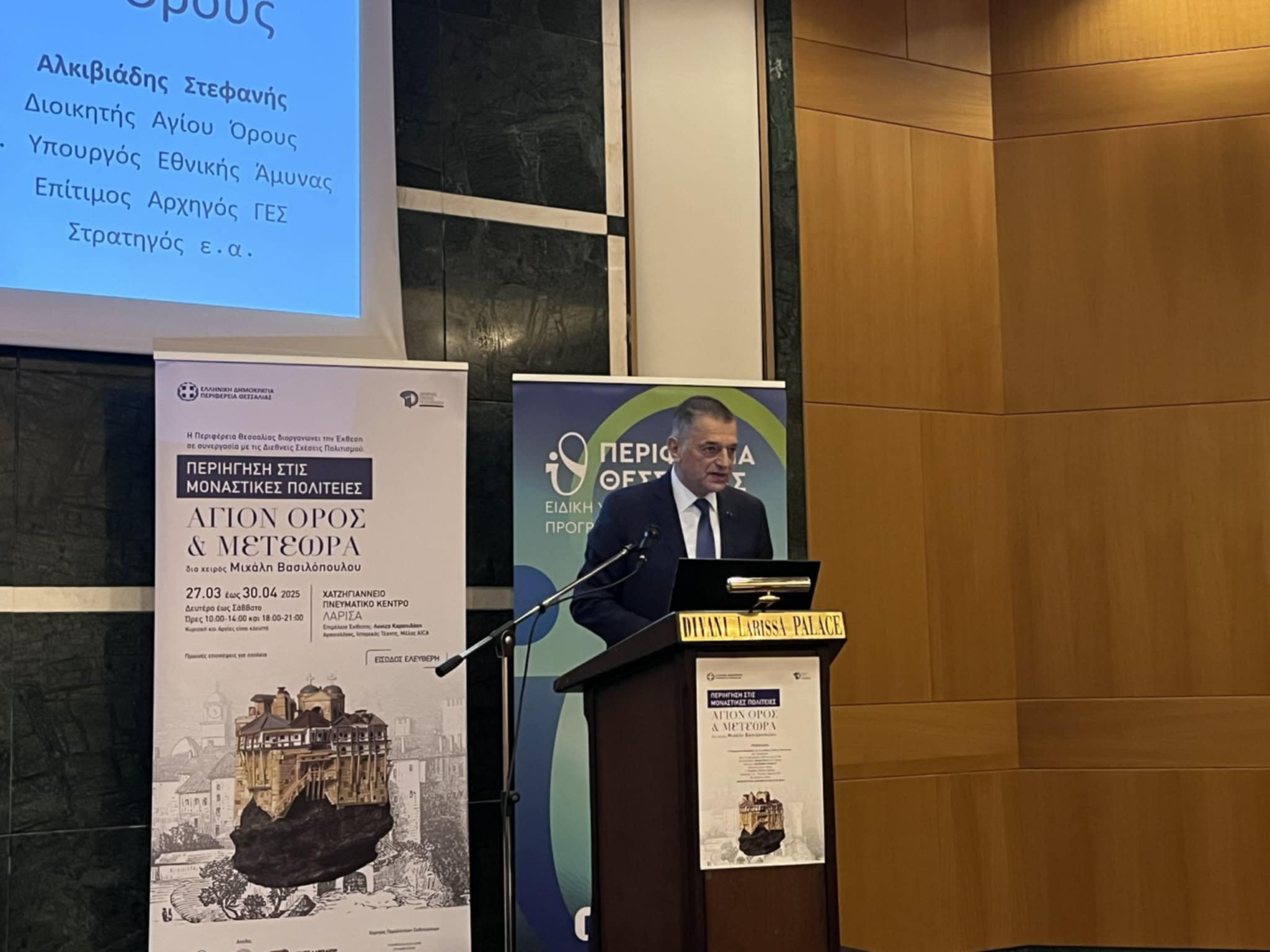 Με ιδιαίτερο ενδιαφέρον πραγματοποιήθηκε το απόγευμα της Τρίτης, στο ξενοδοχείο «Divani» στη Λάρισα, η εκδήλωση που διοργάνωσαν η Περιφέρεια Θεσσαλίας και οι Διεθνείς Σχέσεις Πολιτισμού, με ομιλητή τον διοικητή του Αγίου Όρους, κ. Αλκιβιάδη Στεφανή.