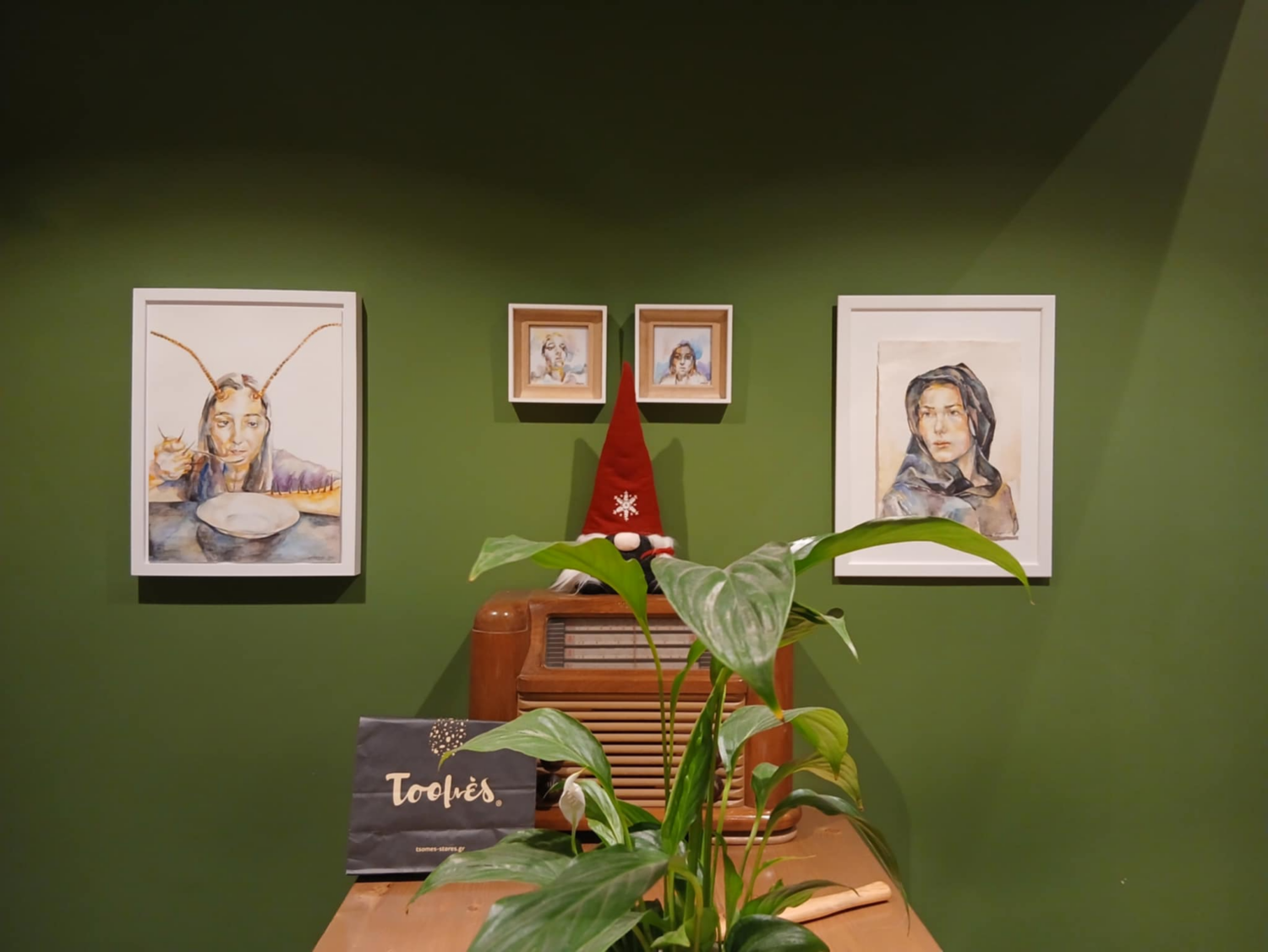 Ξεκίνησε χθες το απόγευμα στη Λάρισα η mini Christmas Exhibition της εικαστικού Άρτεμις Διαμαντή, στον χώρο του Kaveh Kanes 2 – specialty coffee & barista shop, στην οδό Μεγάλου Αλεξάνδρου 41.