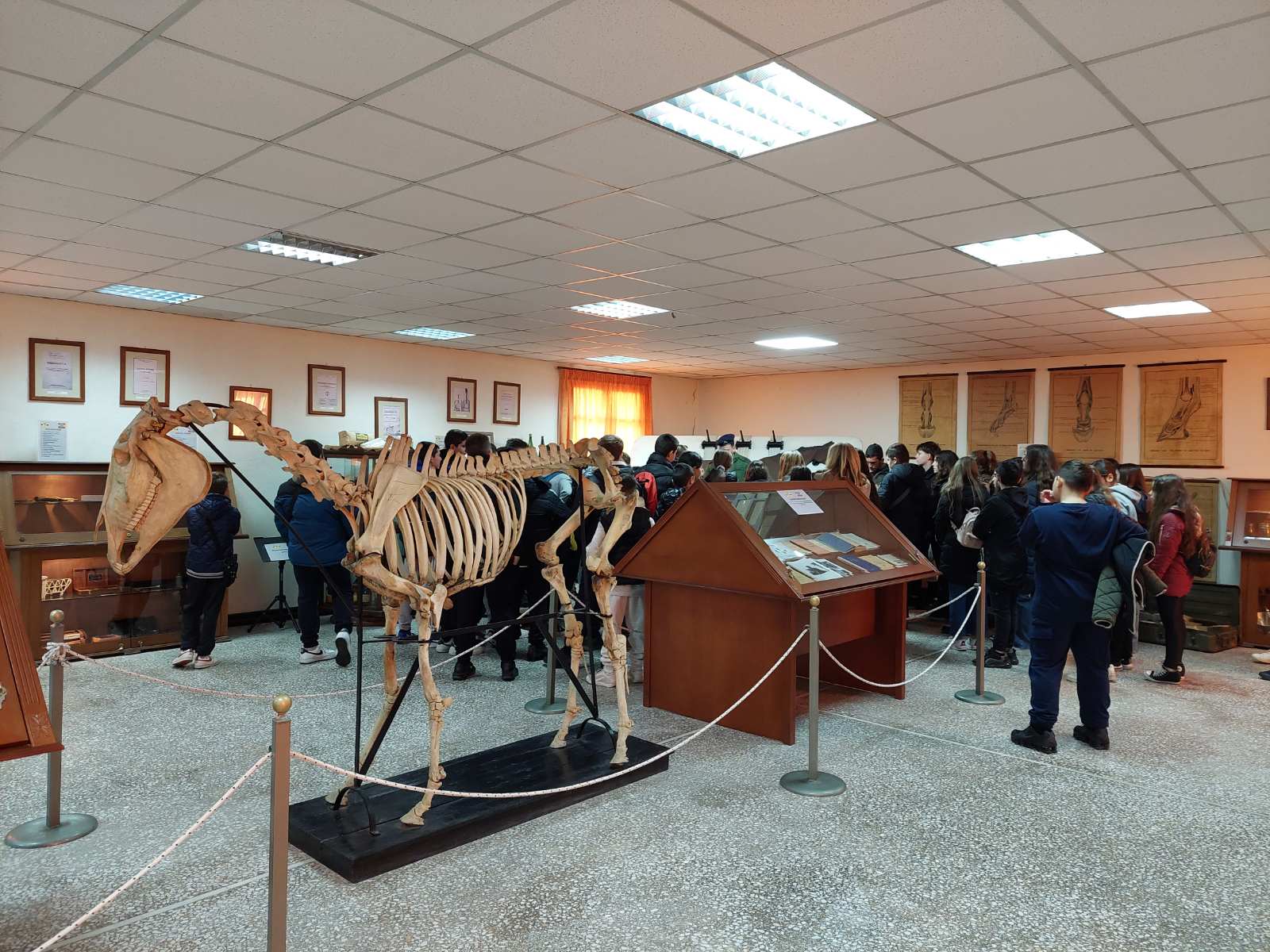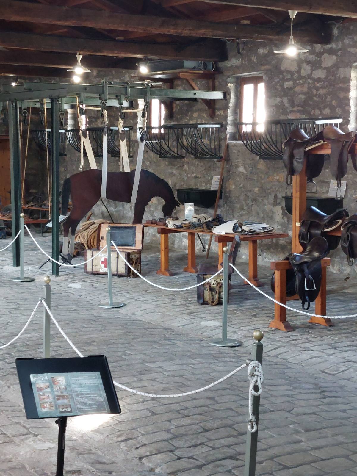Κατά την περιήγηση στους εκθεσιακούς χώρους, οι μαθητές είχαν την ευκαιρία να γνωρίσουν από κοντά σημαντικά εκθέματα που αφορούν την περιποίηση, αξιοποίηση και κτηνιατρική περίθαλψη των μονόπλων. Ανάμεσα σε αυτά ξεχωρίζουν το Πεταλωτήριο, ο Στάβλος μονόπλων και ο χώρος χειρουργικών επεμβάσεων, καθώς και πλούσιο υλικό εργαλείων, πετάλων, σαγματοποιίας, χειρουργικής και οδοντιατρικής κτηνιατρικής, έντυπα, φωτογραφίες και βιβλία.