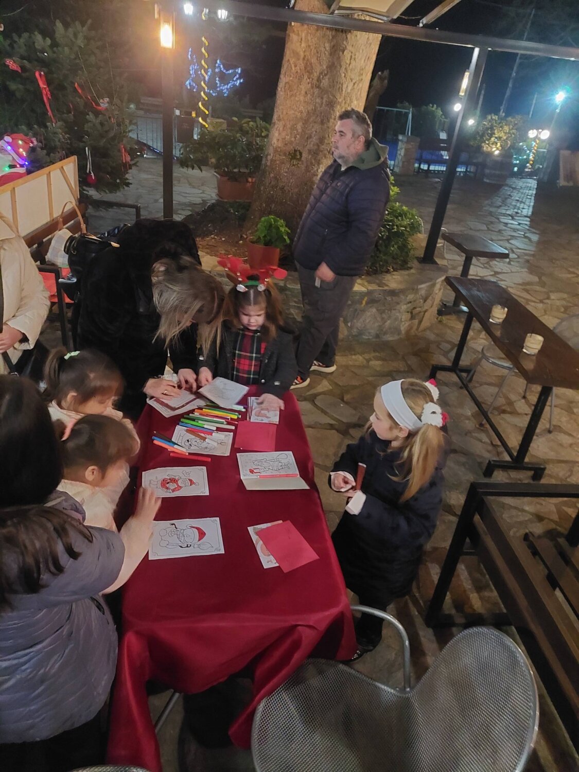 Τη βραδιά πλαισίωσαν ο Άγιος Βασίλης, που μοίρασε δώρα στα παιδιά, το face painting που χάρισε χαμόγελα στους μικρούς και μεγάλους μας φίλους, καθώς και η μουσική του DJ, δημιουργώντας μια όμορφη γιορτινή εμπειρία για όλους. Παράλληλα, προσφέρθηκαν διάφορα εδέσματα και κρασί, συμβάλλοντας στο γιορτινό κλίμα της εκδήλωσης.