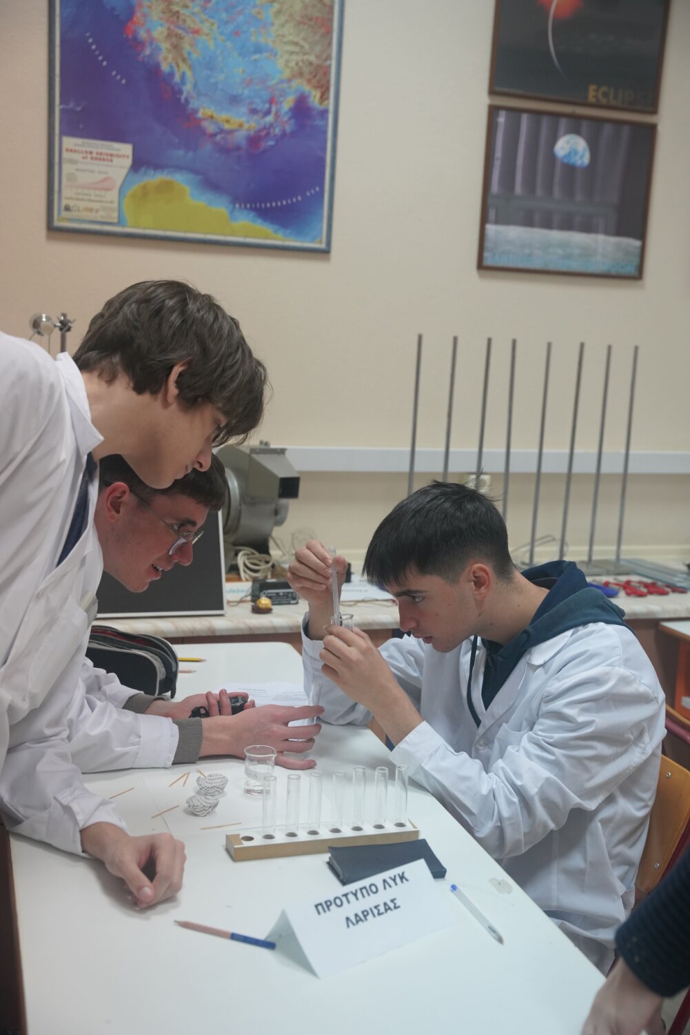 Στην 1η θέση για δεύτερη συνεχή χρονιά αναδείχθηκε η ομάδα μαθητών του Προτύπου Γενικού Λυκείου Λάρισας στο πλαίσιο του τοπικού διαγωνισμού πειραμάτων Φυσικών Επιστημών «E.O.E.S. 2026» που οργανώθηκε από το Εργαστηριακά Κέντρα Φυσικών Επιστημών (Ε.Κ.Φ.Ε.) Λάρισας και Ελασσόνας της Δ/νσης Β/θμιας Εκπαίδευσης Ν. Λάρισας.