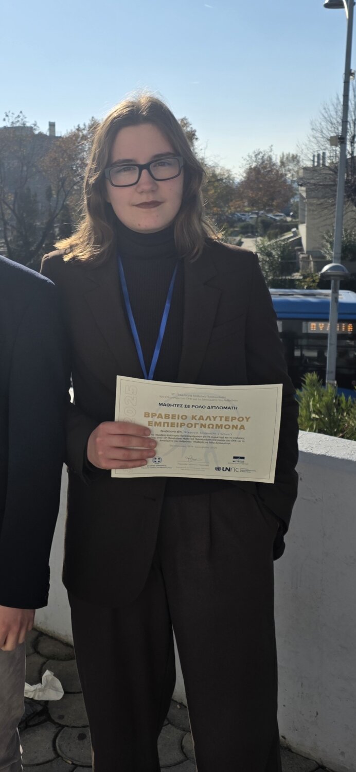 Η Διεύθυνση του 4ου ΓΕΛ και ο Σύλλογος Διδασκόντων «επιθυμεί να συγχαρεί τη μαθήτρια της Γ΄ Λυκείου Στεφανία Μπαργιώτα, η οποία αναγορεύτηκε «Καλύτερη Εμπειρογνώμονας» στο πρόγραμμα «Μαθητές σε ρόλο διπλωμάτη» για δεύτερη συνεχόμενη χρονιά. Επίσης επιθυμούμε να συγχαρούμε τις μαθήτριες Τράκα Μυρτώ, Δημητριάδου Χαρίκλεια, Ράμα Κέισυ και Ντούσιου Ανδριανή για την συμμετοχή τους στο διαγωνισμό. Εκπροσώπησαν επάξια το σχολείο.