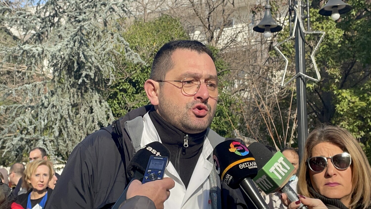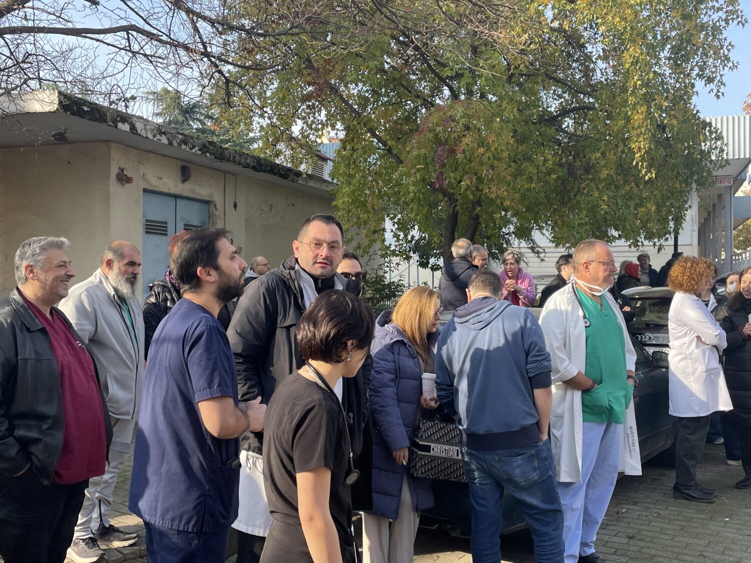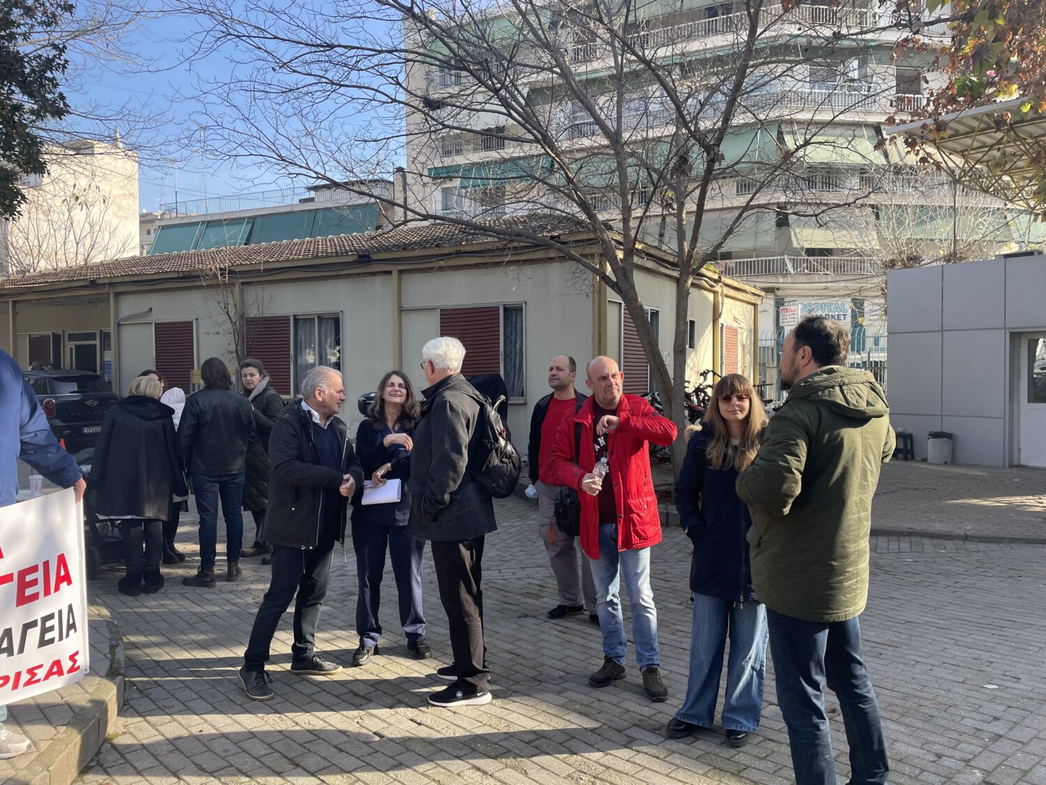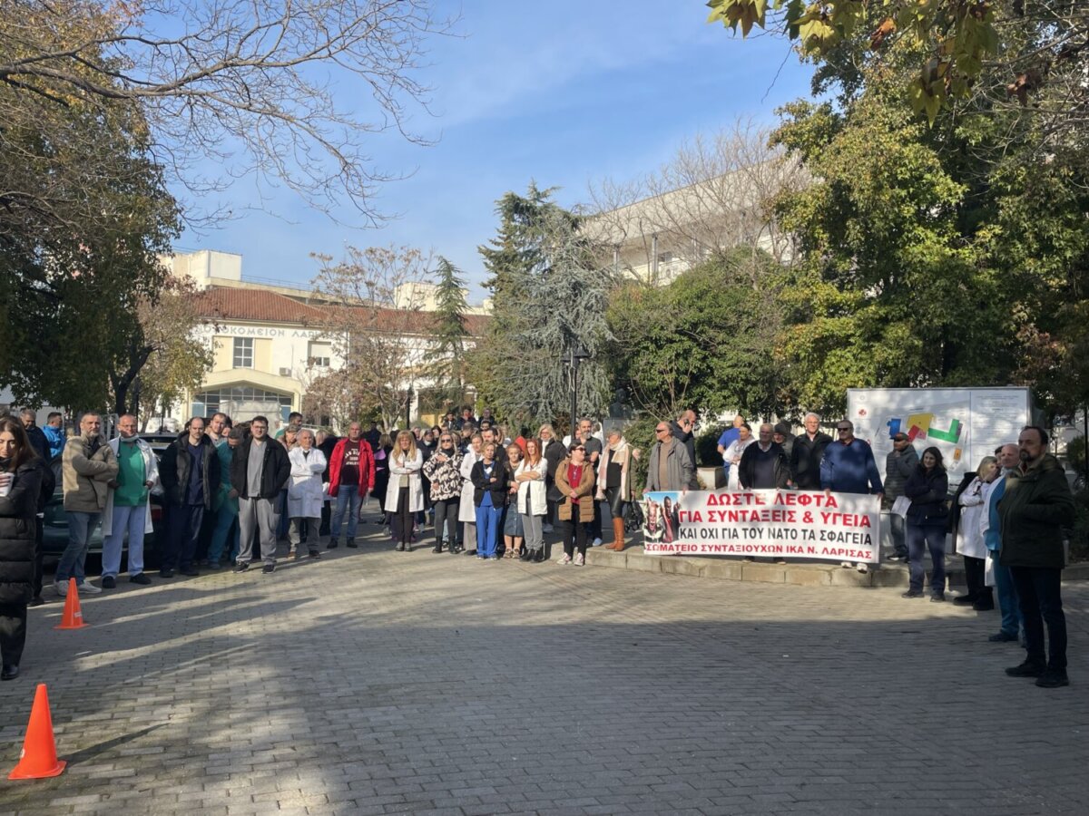 «Να πάρουν τα χέρια τους μακριά από το Γενικό Νοσοκομείο», φώναξαν εργαζόμενοι του νοσοκομείου της Λάρισας το πρωί της Πέμπτης, στη διαμαρτυρία που πραγματοποιήθηκε στον προαύλιο χώρο.