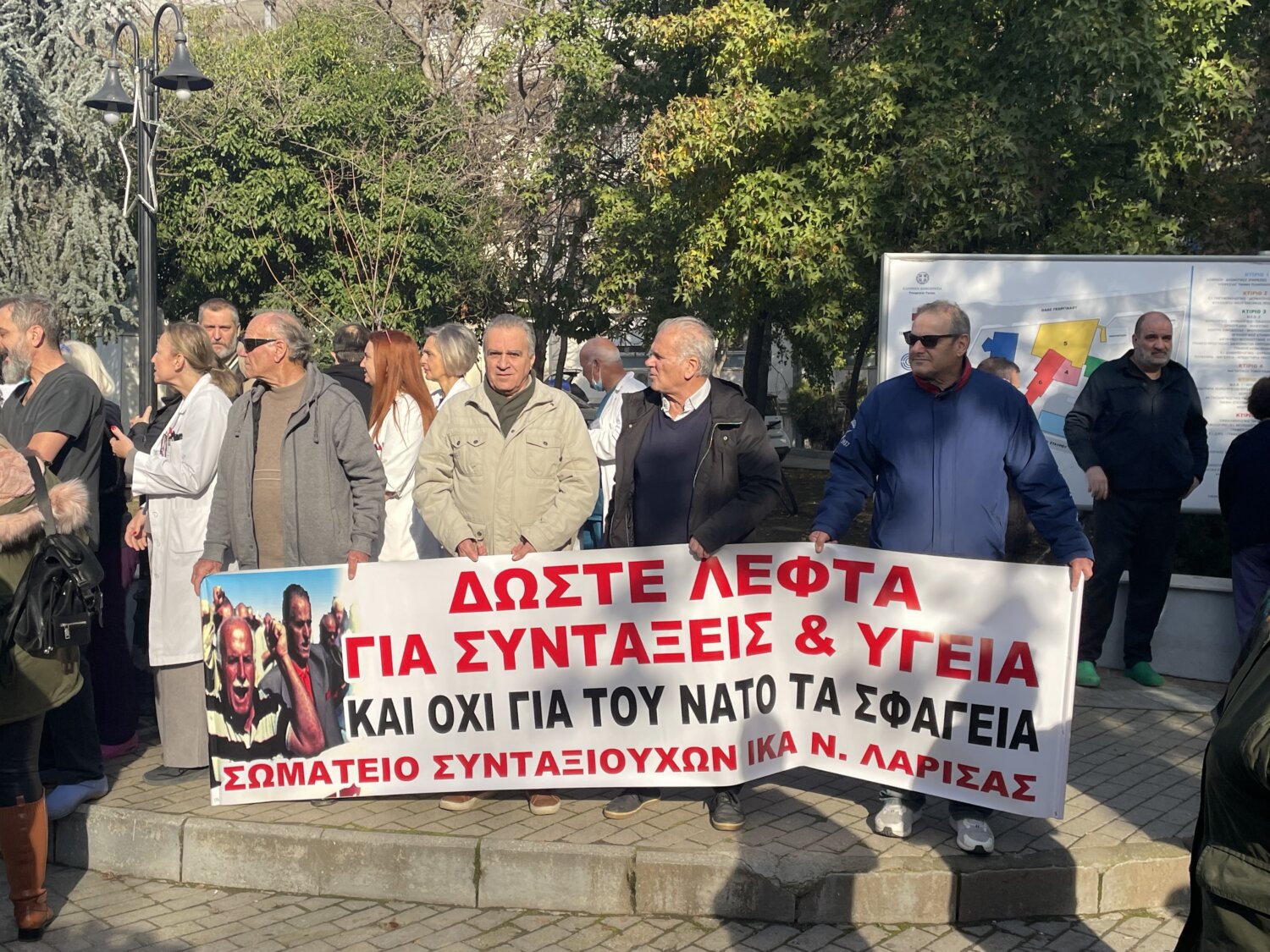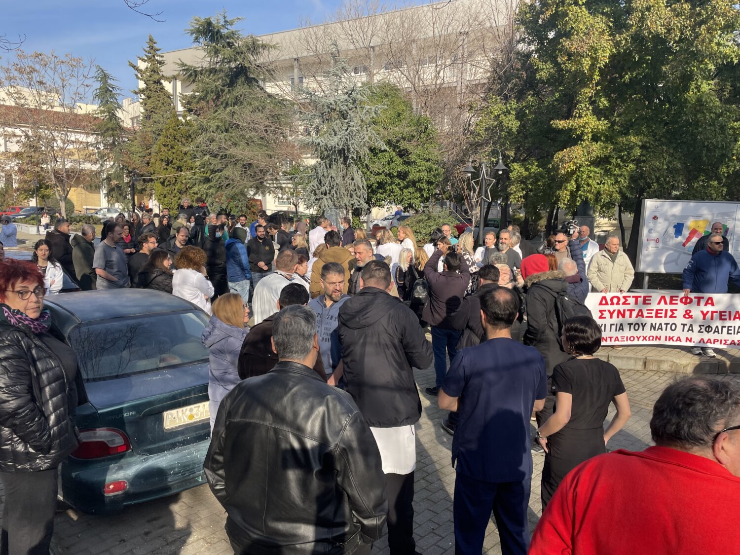 Η ΕΙΝΚΥΛ και ο Σύλλογος Εργαζομένων του Γενικού Νοσοκομείου Λάρισας, είχαν απευθύνει κάλεσμα σε γιατρούς και νοσηλευτές για συμμετοχή στις συνεχόμενες διαμαρτυρίες. Έτσι σήμερα το πρωί πραγματοποιήθηκε Γενική Συνέλευση και στη συνέχεια διαμαρτυρία με τη συμμετοχή φορέων της πόλης.