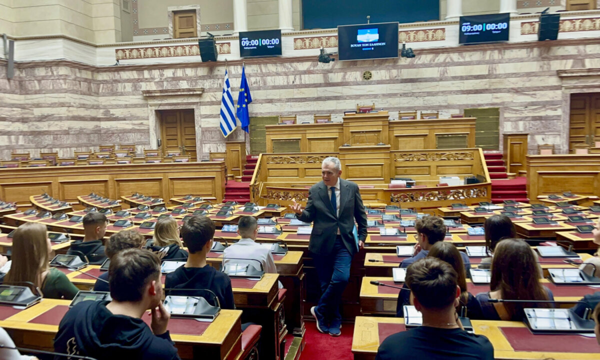Τα παραπάνω τόνισε ο Γενικός Γραμματέας της Κοινοβουλευτικής Ομάδας της Νέας Δημοκρατίας, βουλευτής Λαρίσης, κ. Μάξιμος Χαρακόπουλος μιλώντας σε 75 μαθήτριες και μαθητές του 1ου Γενικού Λυκείου Φαρσάλων, που πραγματοποίησαν εκπαιδευτική επίσκεψη στη Βουλή των Ελλήνων.
