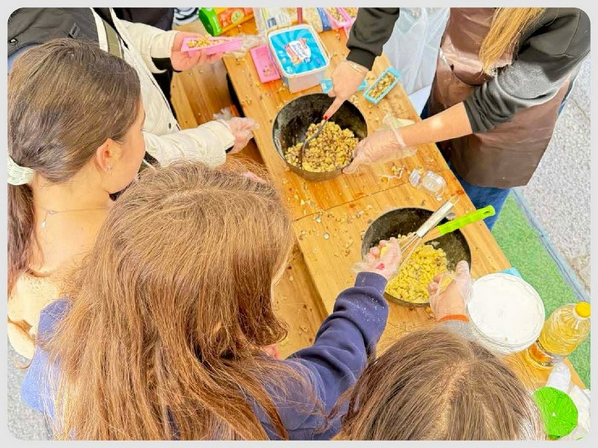 Παράλληλα, συμμετείχαν σε πρωτότυπες δραστηριότητες, όπως παιχνίδια γεύσης με κλειστά μάτια, όπου προσπαθούσαν να αναγνωρίσουν τα συστατικά της σοκολάτας, αλλά και στην παρασκευή κουλουριών, τα οποία έψηναν γρήγορα και δοκίμαζαν με χαμόγελο.