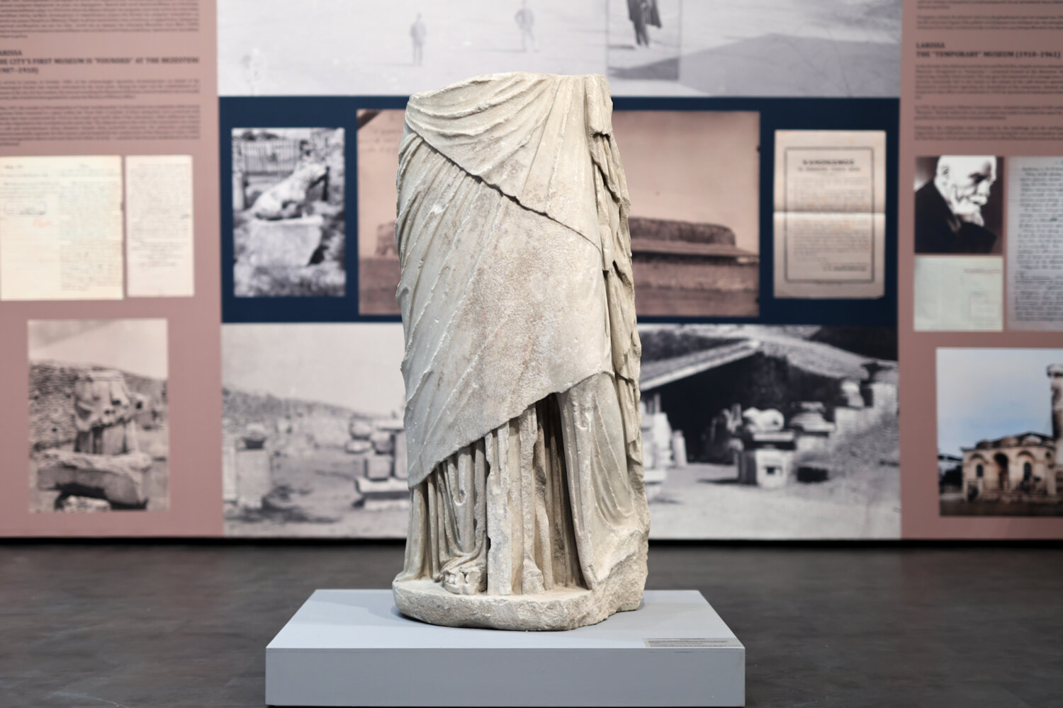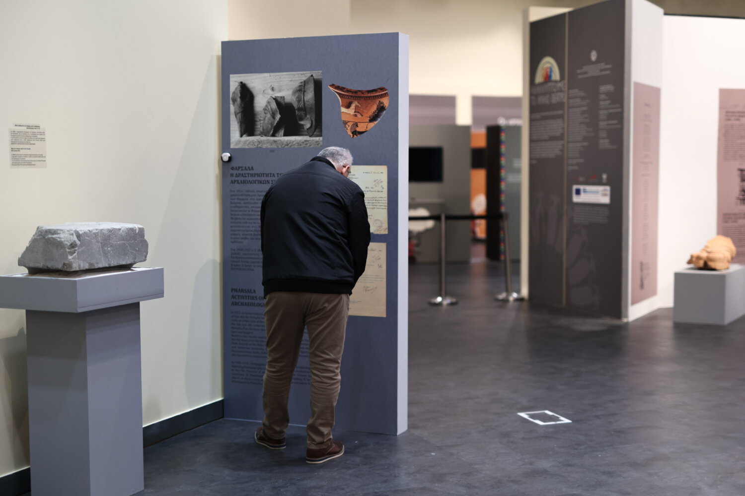 Με άγνωστο αρχειακό υλικό και δανεισμό αρχαιοτήτων από το Εθνικό Αρχαιολογικό Μουσείο και το Αθανασάκειο Αρχαιολογικό Μουσείο Βόλου, αποτυπώνεται η μεγάλη προσπάθεια συγκέντρωσης των διάσπαρτων αρχαιοτήτων στη Λάρισα, τον Τύρναβο, την Ελασσόνα και την Αγιά, καθώς και η ίδρυση των πρώτων «Μουσείων». Παράλληλα, παρουσιάζονται οι αρχές των ανασκαφικών ερευνών στην περιοχή από Έλληνες και ξένους αρχαιολόγους, τα ευρήματα των οποίων εμπλούτισαν τις αρχαιολογικές συλλογές.