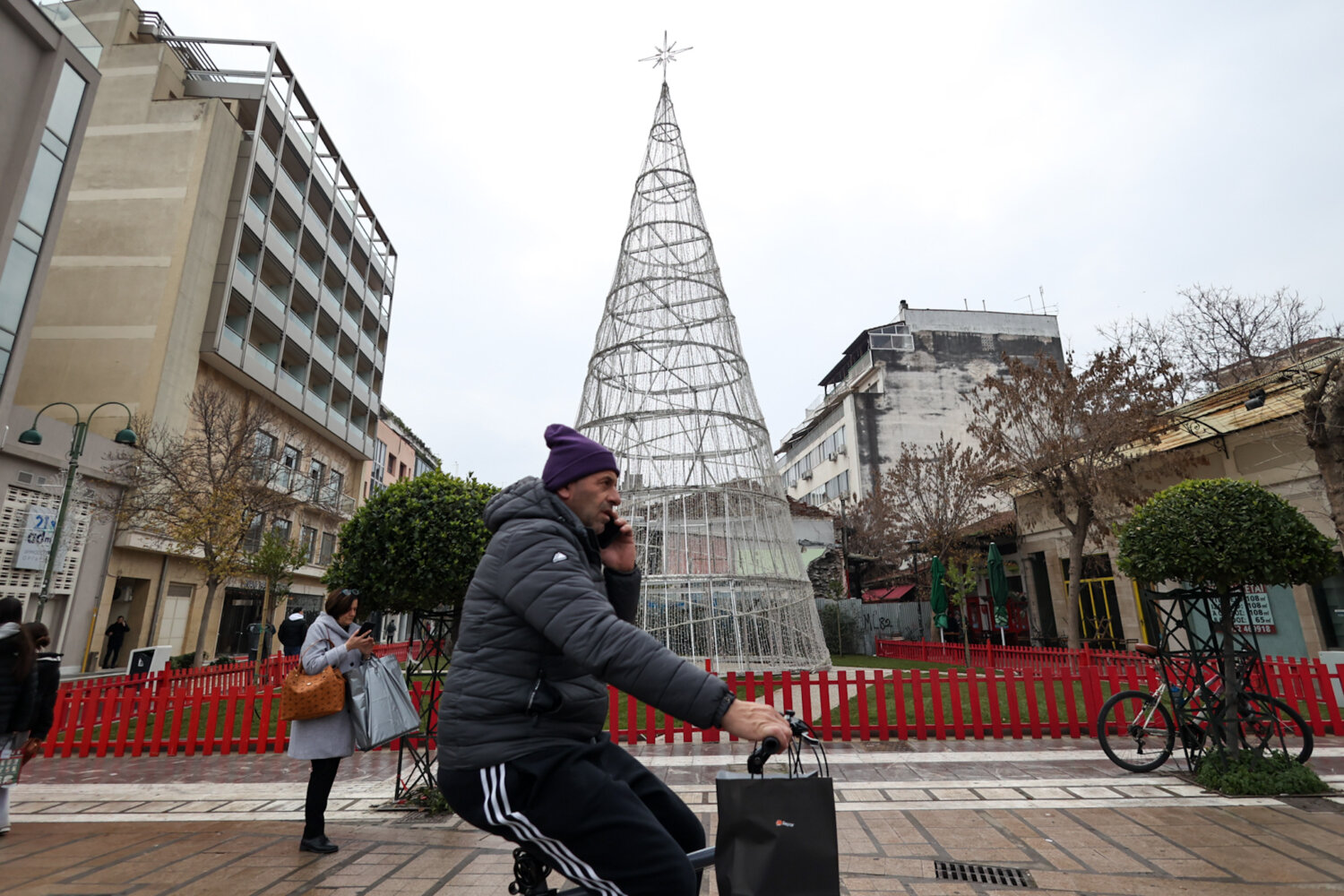 Σε έντονα χριστουγεννιάτικους ρυθμούς κινείται σήμερα η Λάρισα, με την πόλη να φορά τα γιορτινά της και την αγορά να παραμένει ανοιχτή, προσελκύοντας ωστόσο λίγο κόσμο το πρωί της Κυριακής στο κέντρο, παίζοντας κι έναν ρόλο βεβαίως ο καιρός που έχει «χαλάει».