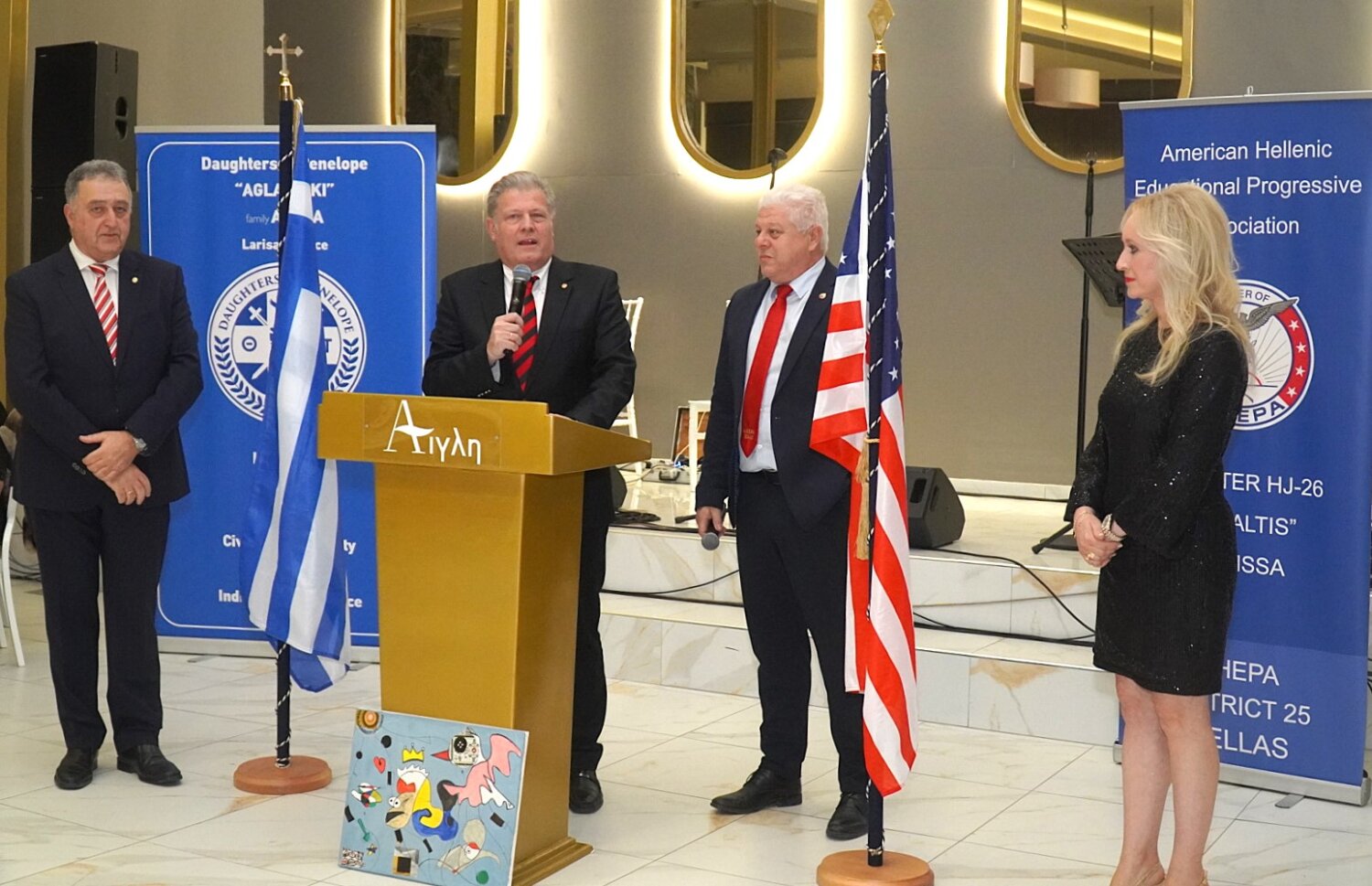 Από πλευράς AHEPA παραβρέθηκαν ο Κυβερνήτης της Περιφέρειας 28 Ευρώπης κος Δημοσθένης Μαμμωνάς, ο Αντιπρόεδρος Ελληνισμού και εκτελών χρέη Αντικυβερνήτη κος Παναγιώτης Ταρενίδης και ο Αντιπρόεδρος Οικογένειας και Προσωπικής Αριστείας κος Λάμπρος Βελούδος, εκπροσωπώντας το ΔΣ της AHEPA Hellas.
