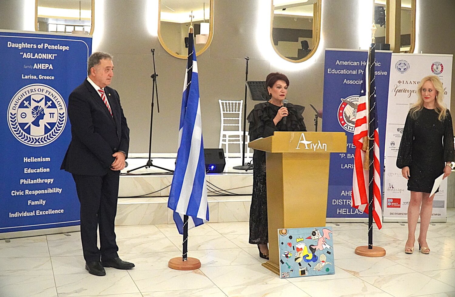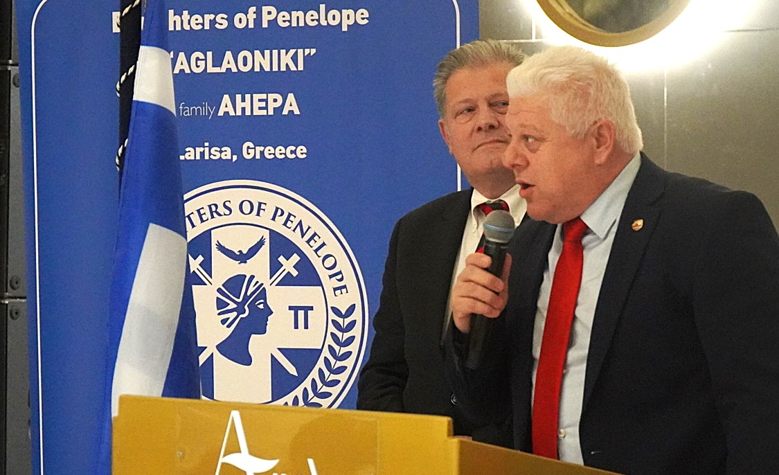 Στον χαιρετισμό τους οι πρόεδροι των Τμημάτων Λάρισας AHEPA HJ 26 “Peter Baltis” κος Βασίλης Καραβασίλης και Doughters of Penelope “Aglaoniki” κα Ρουμπίνη Λεονταρή αναφέρθηκαν στο έργο που επιτελούν τα τμήματα και υποσχέθηκαν να συνεχίσουν με τον ίδιο ζήλο και διάθεση για την επίτευξη και νέων στόχων προς όφελος του κοινωνικού συνόλου, πιστοί στις αρχές και τους σκοπούς της AHEPA. Ιδιαίτερα υπογράμμισαν τη σημασία της συλλογικής συμμετοχής και της έμπρακτης στήριξης των ευάλωτων κοινωνικών ομάδων, ιδιαίτερα σε μια περίοδο αυξημένων αναγκών.