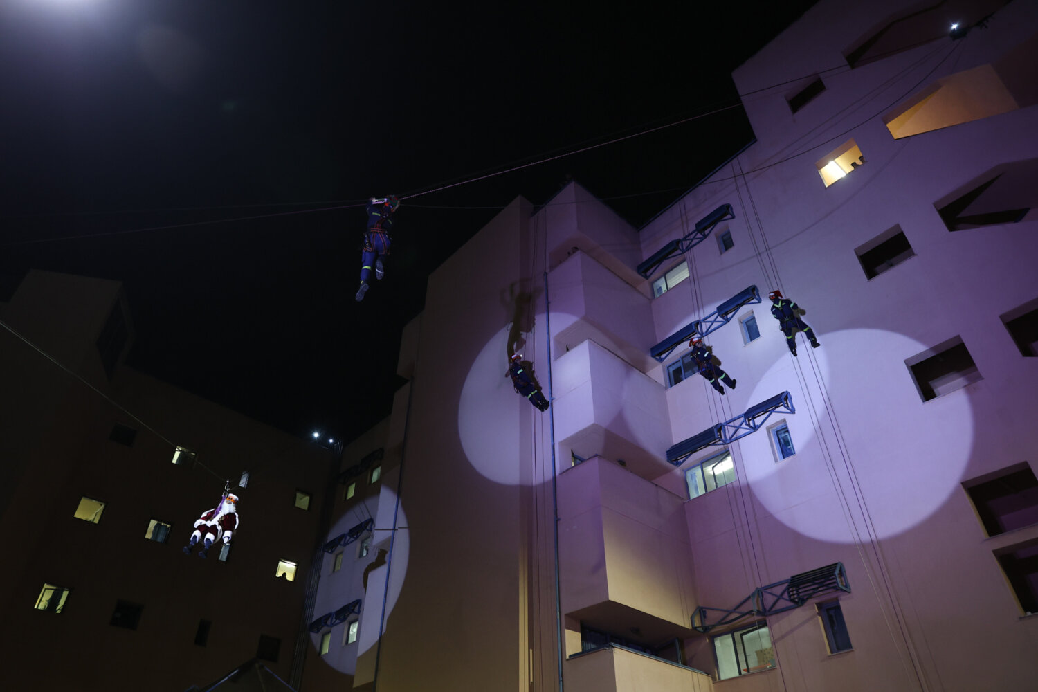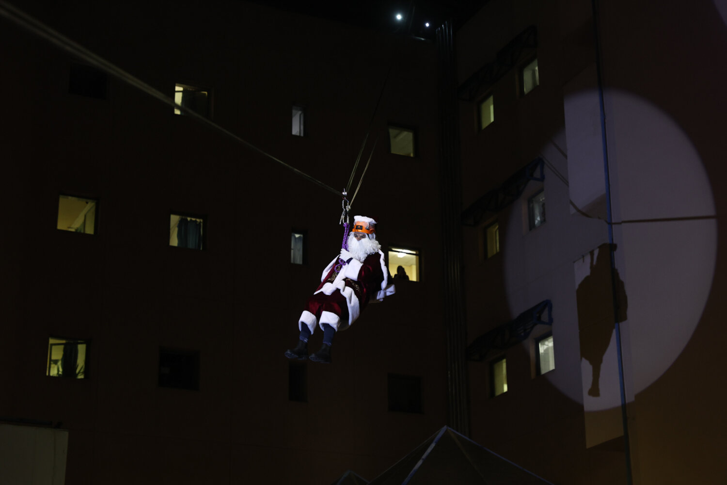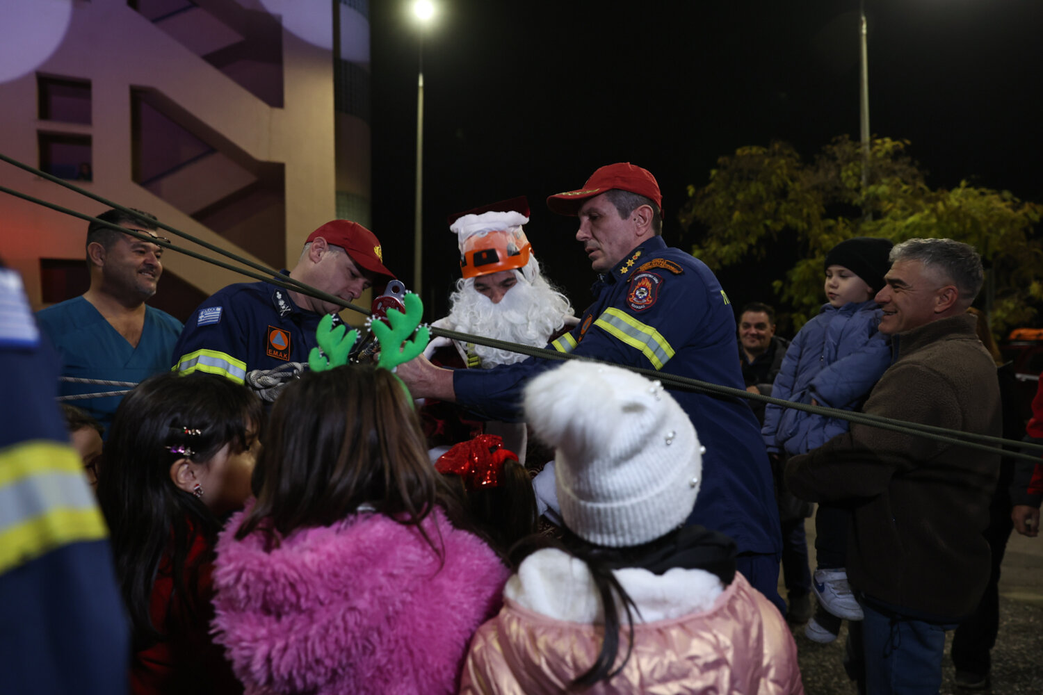 Κατά τη διάρκεια της εκδήλωσης που έγινε σε συνεργασία με την 8η ΕΜΑΚ Θεσσαλίας, ο Άγιος Βασίλης κατέβηκε από την οροφή του νοσοκομείου και μοίρασε δώρα στα παιδιά.