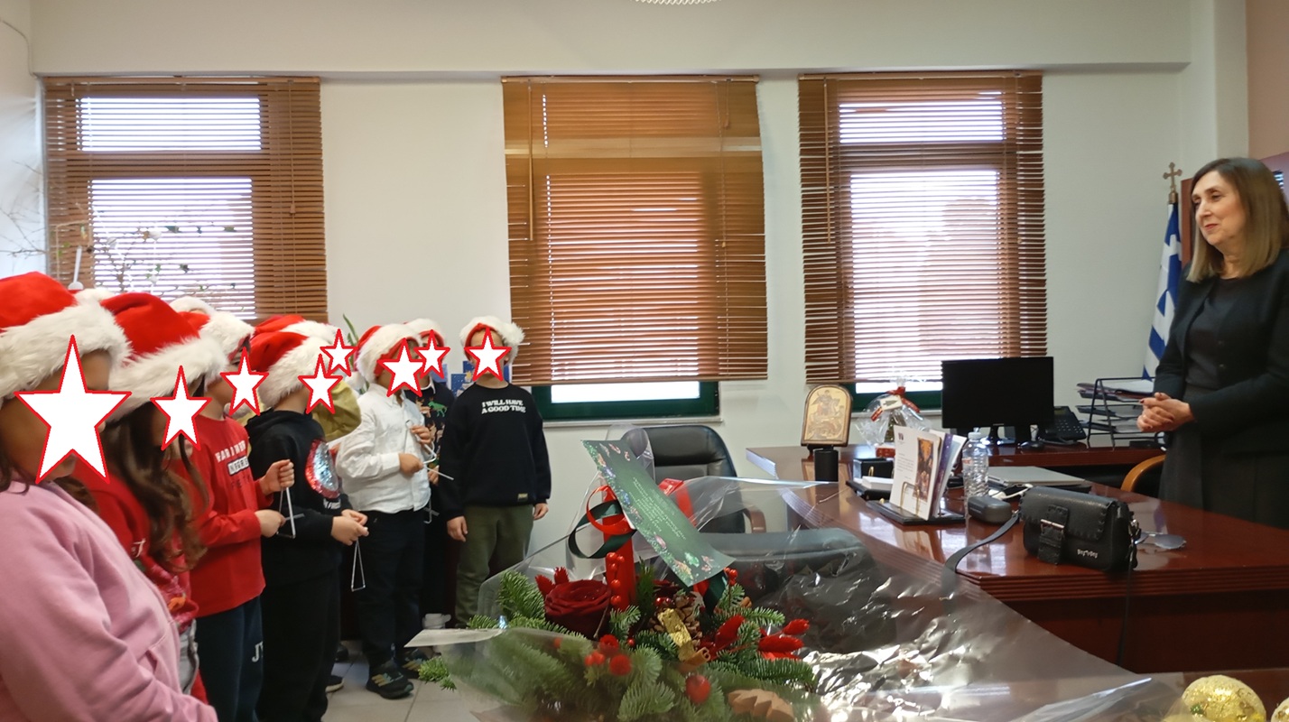 Με χαρούμενες παιδικές φωνές και χριστουγεννιάτικες μελωδίες γέμισε το Γραφείο της Διευθύντριας Πρωτοβάθμιας Εκπαίδευσης Λάρισας, κ. Καραγιώργου Αικατερίνης, καθώς ενόψει της εορτής των Χριστουγέννων, δέχθηκε διαδοχικά την επίσκεψη μαθητών και μαθητριών του 19ου Δημοτικού Σχολείου Λάρισας, στις 19/12/2025, και του 2ου Δημοτικού Σχολείου Λάρισας, στις 23/12/2025, προκειμένου να ψάλλουν τα κάλαντα των Χριστουγέννων από διάφορες περιοχές της Ελλάδας, καθώς και παραδοσιακά και σύγχρονα τραγούδια της πολιτιστικής μας παράδοσης.